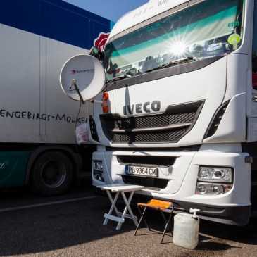 Die allermeisten Trucker kommen aus östlichen EU-Staaten und fahren für Speditionen der entsprechenden Länder. Woche um Woche kurven sie kreuz und quer durch Europa. Ihre jeweilige Order erhalten sie übers Internet direkt aus der heimischen Zentrale, die über die exakte Position ihrer LKWs via Satellit in Echtzeit informiert wird.