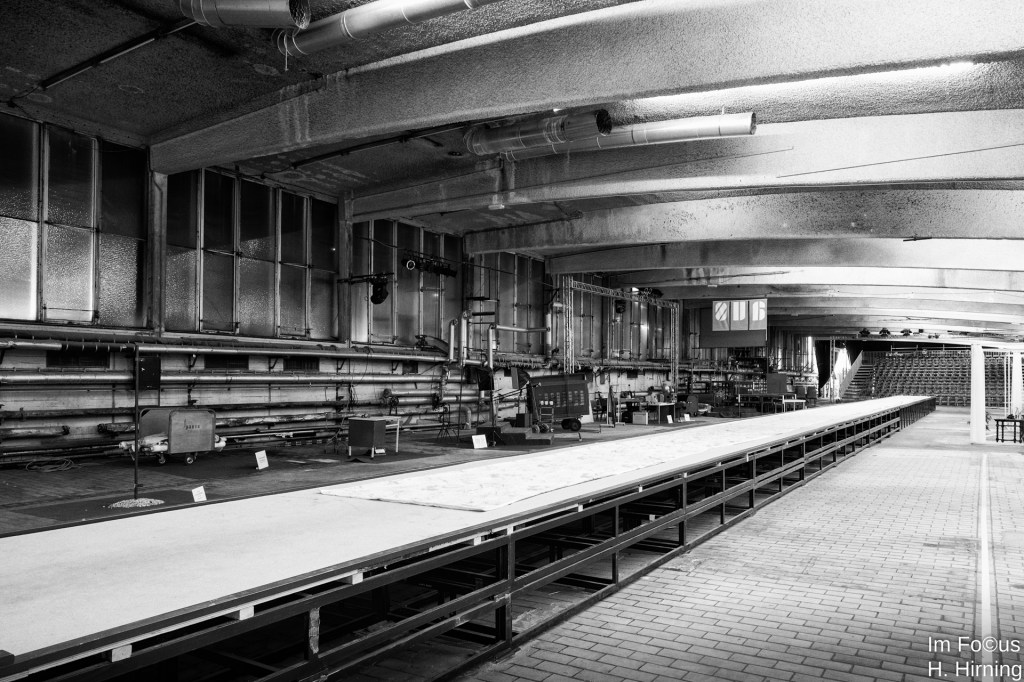 Die Bogenhalle ist lediglich ausgeräumt. Sie verfügt über eine Reihe alter Installationen und bietet damit eine ideale Kulisse für kulturelle Großereignisse. Das Theater Lindenhof hat von Anfang an diese Möglichkeit gesehen und genutzt.
