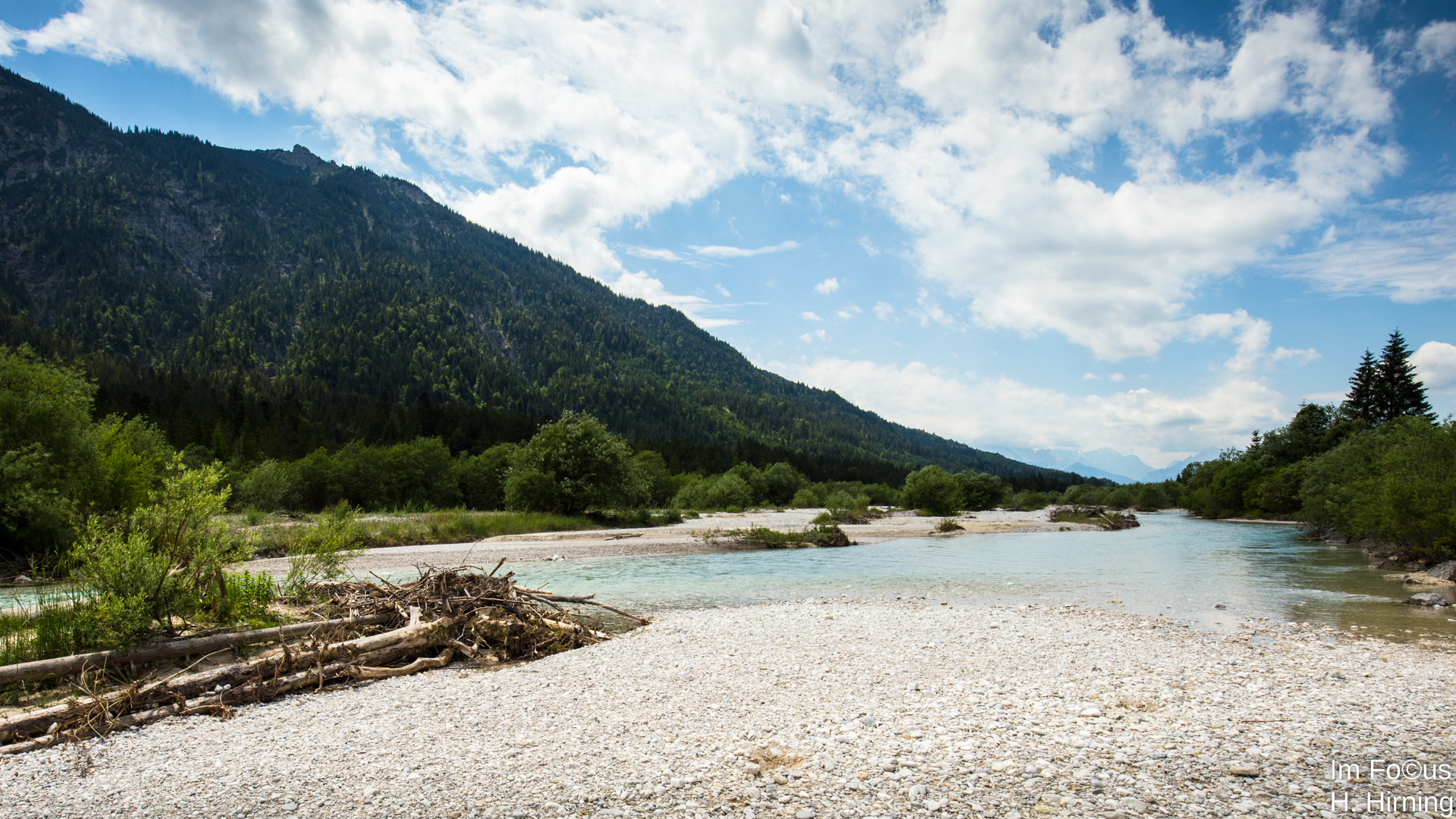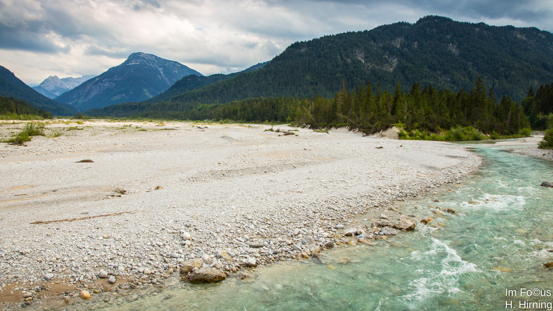 Nur wenige Kilometer später überschreitet der rauschende Rißbach die deutsche Grenze und – verstummt! An einem Wehr wird das Wasser aufgestaut und in ein Rohr eingeleitet. Ab jetzt gehört das Leben spendende Nass der Energiewirtschaft. Was bleibt, sind riesige Schotterflächen, die langsam verbuschen, da die Hochwasser und damit die Umschichtungen von Sand und Schotter ausbleiben. Ein artenreicher intakter Naturraum mit zahlreichen seltenen Pflanzen, Vogelarten und Insekten stirbt langsam aber unaufhaltsam.