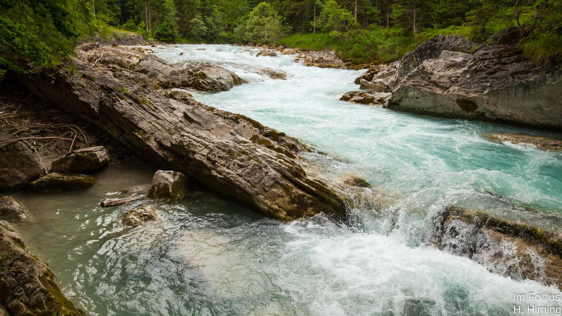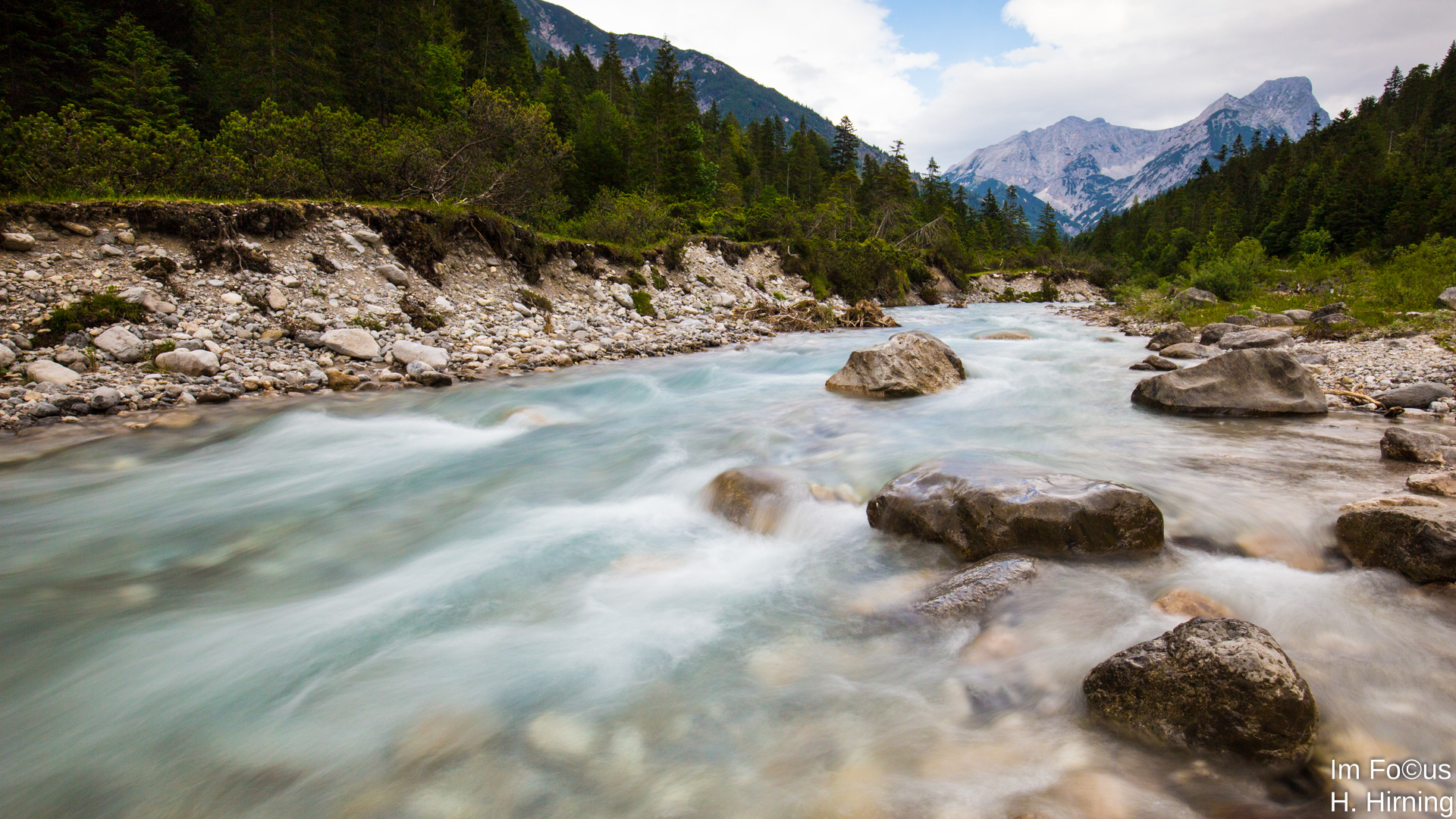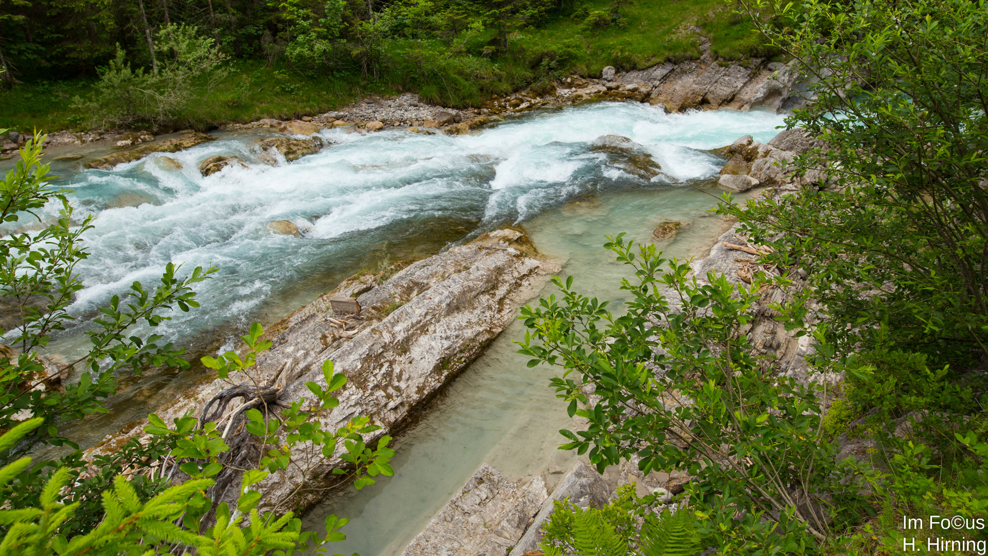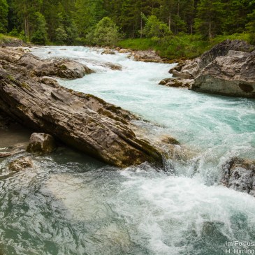 Der Rißbach, ein munterer Wildbach, dessen Quellgebiet im Bereich des Großen Ahornbodens (Österreich) liegt, fließt aus der Mitte des Karwendelgebirges Richtung Norden dem Tal der Oberen Isar (Bayern) entgegen.