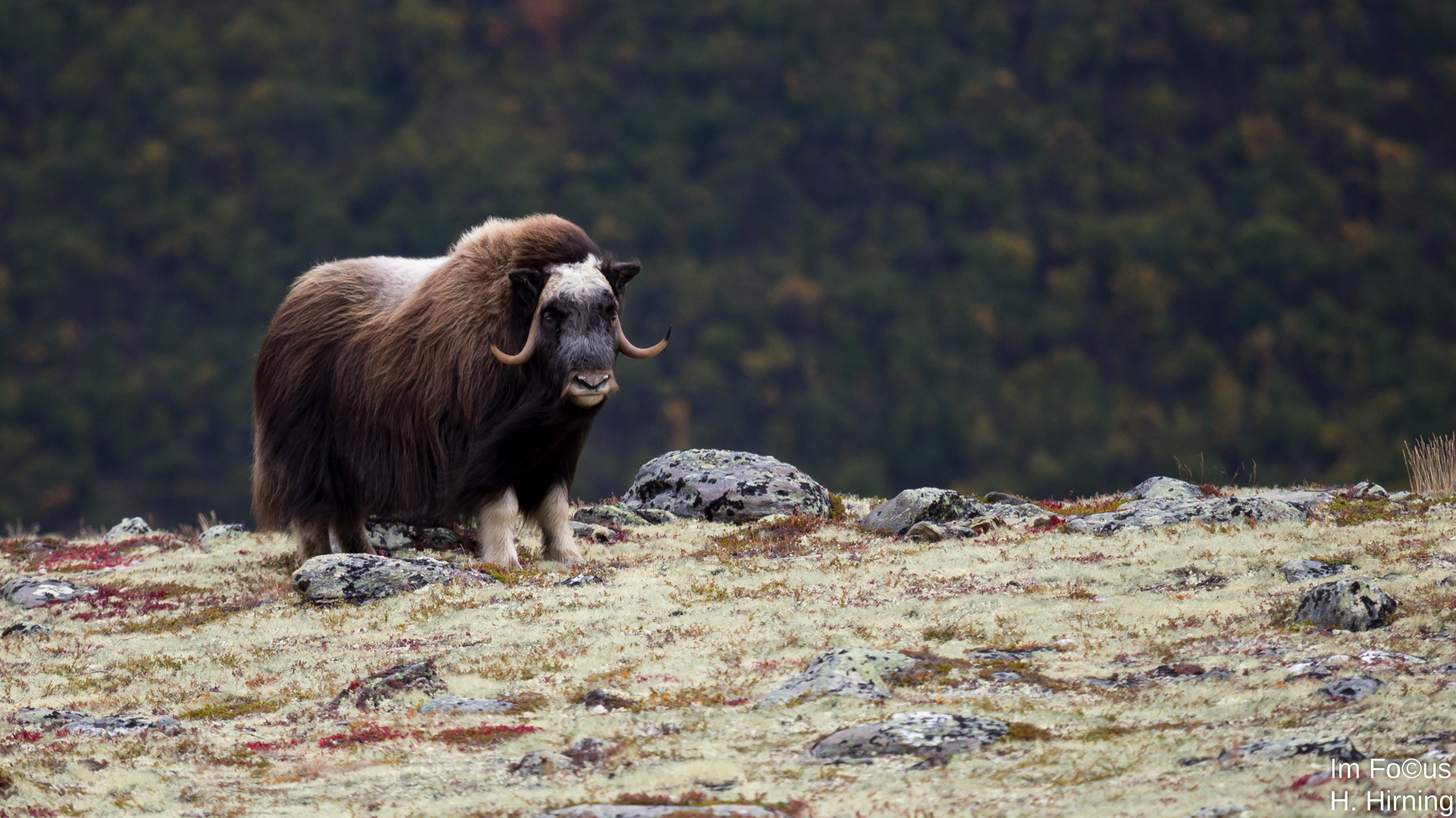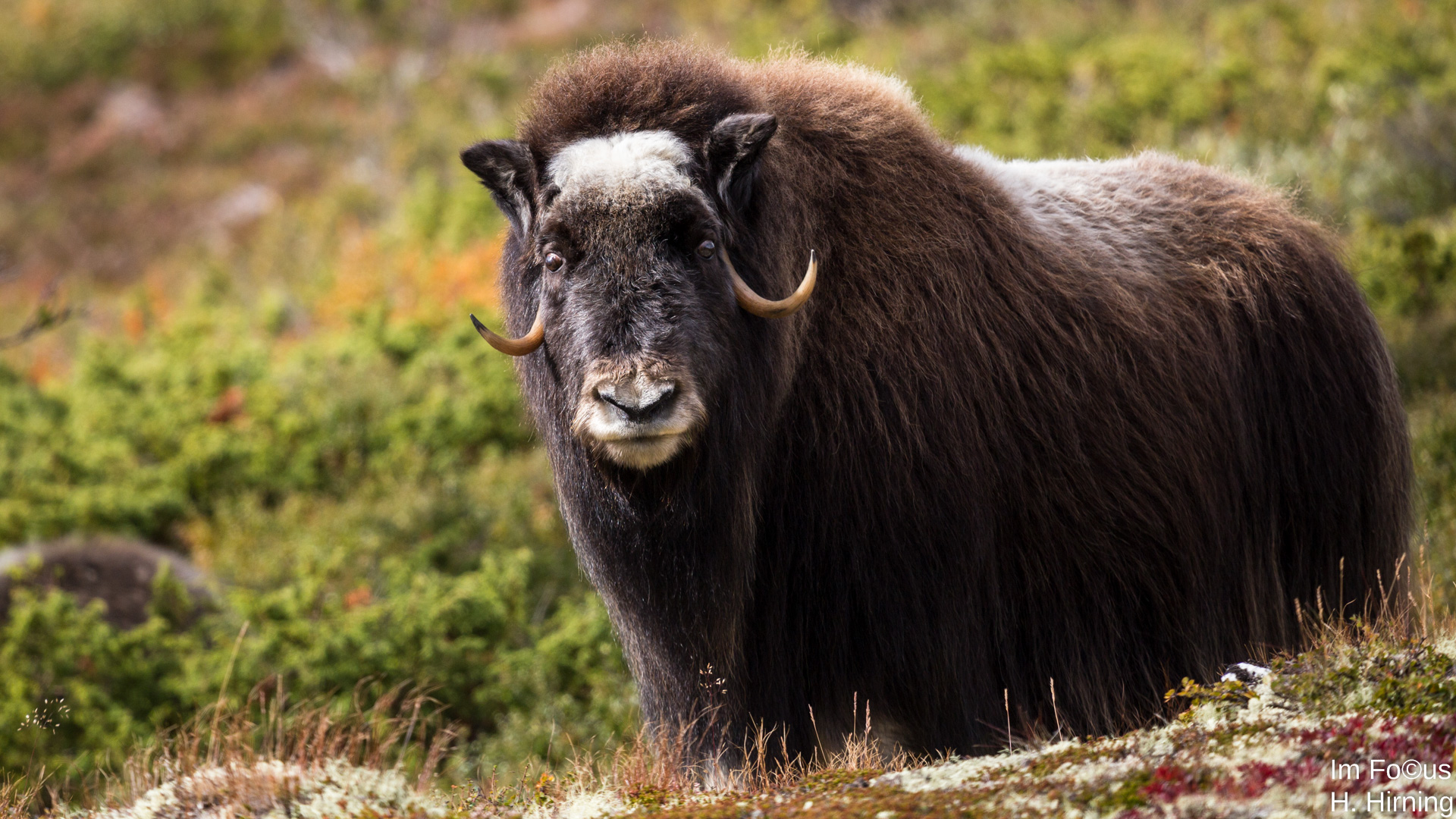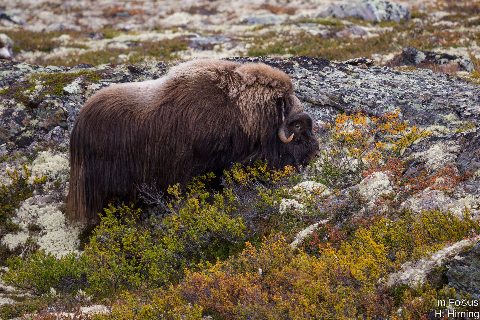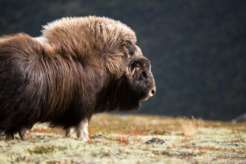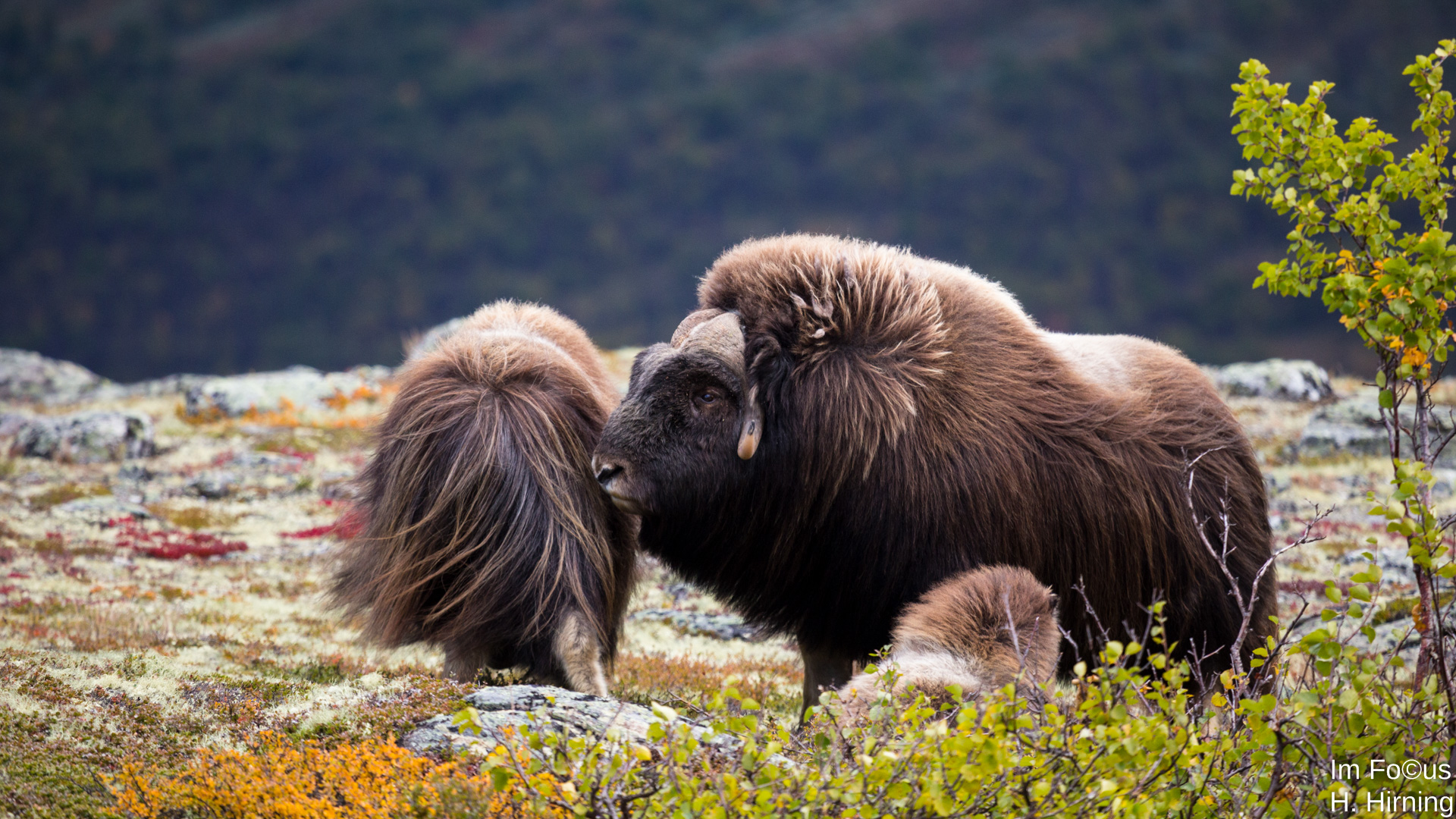 Um diese Aufnahmen zu machen, hielt ich mich mehrere Stunden in der Nähe der Tiere auf. Mit der Zeit konnte ich die Distanz von 200 auf 80 Meter verringern. Bei den Moschusochsen im Dovrefjell handelt es sich um die einzige freilebende Herde in Europa. Sie besteht aus ca. 300 Tieren. Vor einigen Jahren hat sich ein Bulle mit zwei Kühen nach Schweden abgesetzt und dort eine kleine Herde begründet.