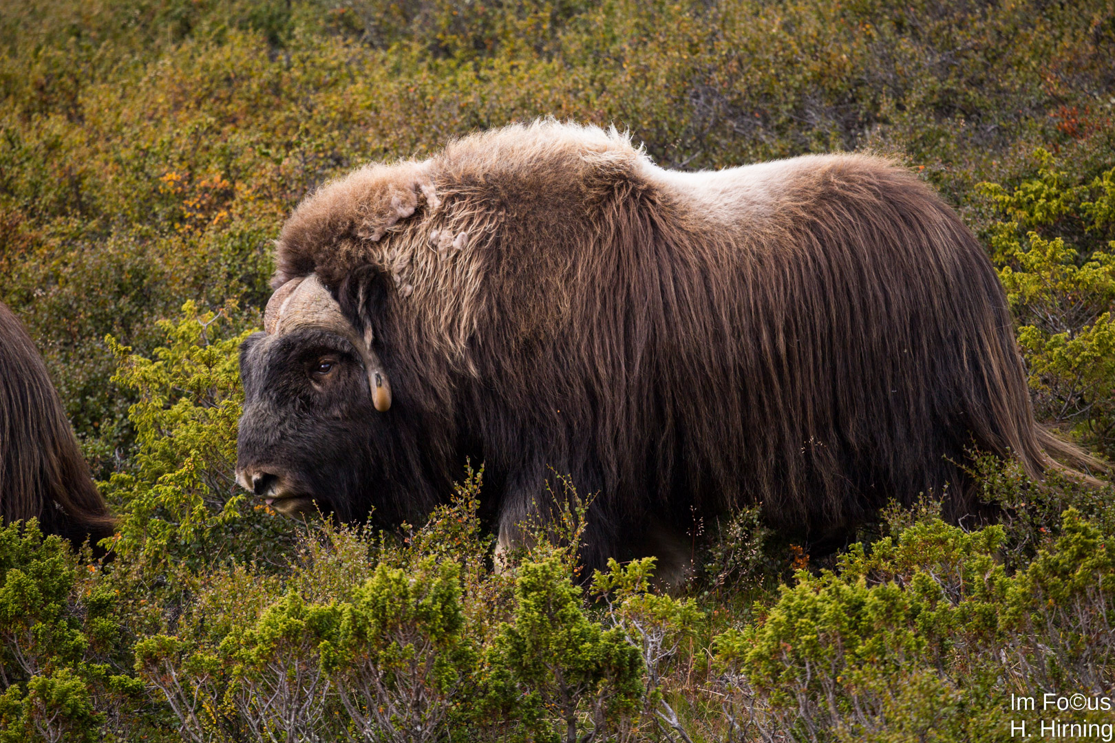 Bereits nach kurzer Zeit entdeckte ich eine Gruppe Tiere weit ab vom Pfad. In der herbstlich trockenen Tundra war eine Annäherung unproblematisch möglich. Allerdings war Vorsicht geboten, denn der Herbst ist Brunftzeit.