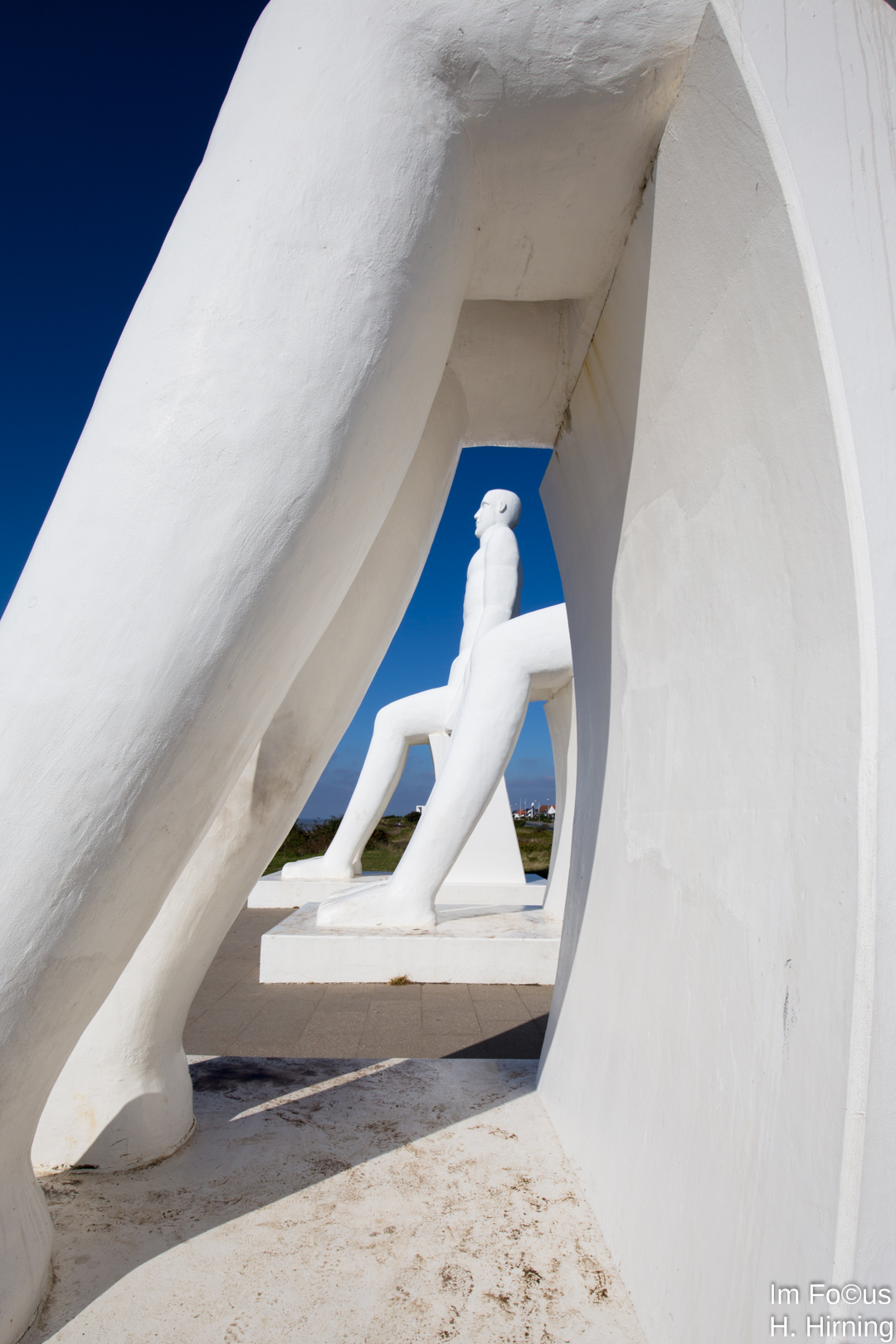 Die 9 m hohen Betonfiguren werden im Volksmund auch „Die weißen Riesen von Jütland“ genannt. Sie wurden anlässlich des 100-jährigen Jubiläums Esbjergs als selbständige Landgemeinde am 28. Oktober 1995 der Öffentlichkeit übergeben. Damit habe ich mit meinem Beitrag leider den 25-jährigen Jahrestag knapp verfehlt. Da die Figuren direkt am Strand stehen, sind sie vom Meer aus noch in 10 km Entfernung zu erkennen.