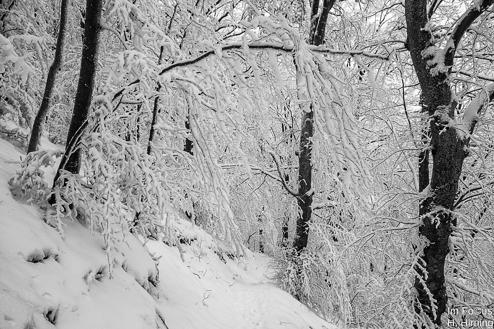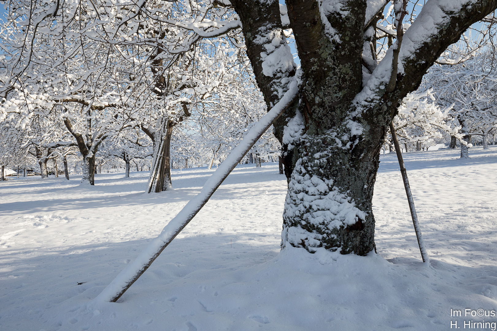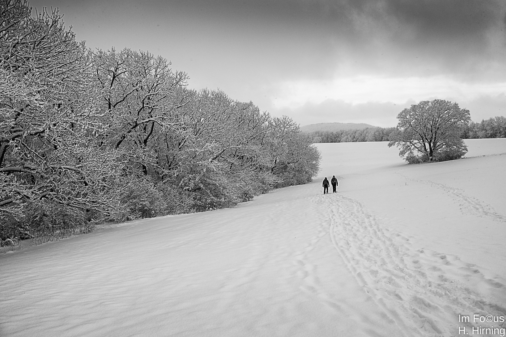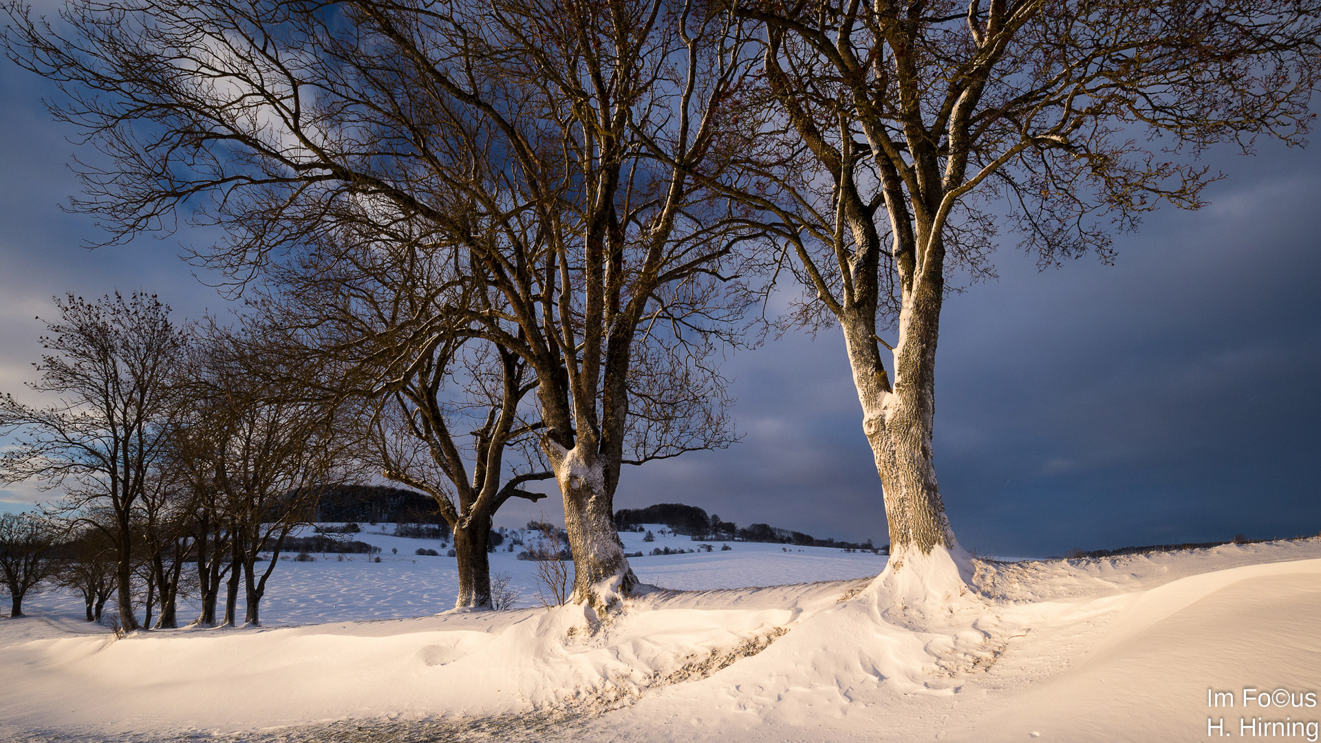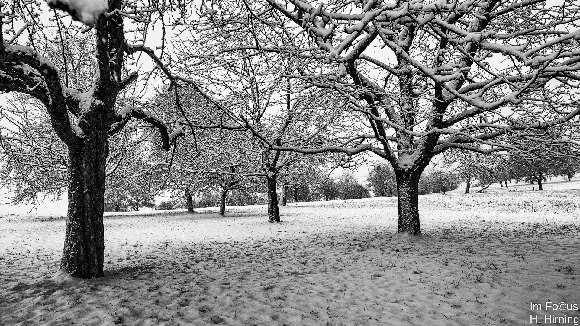 Bei der Anfahrt war es noch dunkel, als ich diese Nebenstraße passierte. Dies ist der Zustand bei der Rückfahrt zwei Stunden später. Man kann sich ausmalen wie die Bedingungen vor 50 Jahren gewesen sein müssen, als auf der Alb nicht nur 30, sondern hundert Zentimeter Schnee üblich waren.