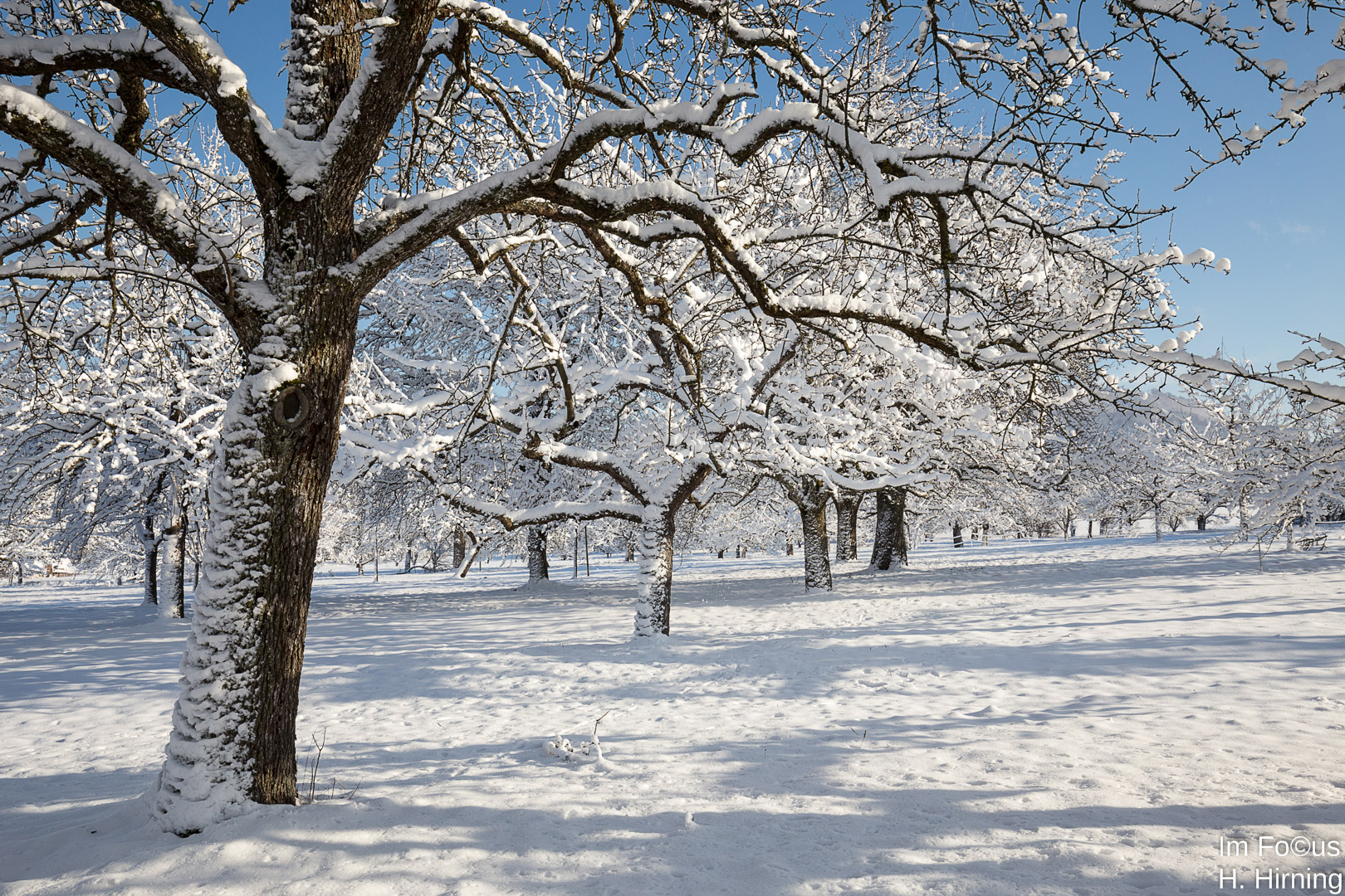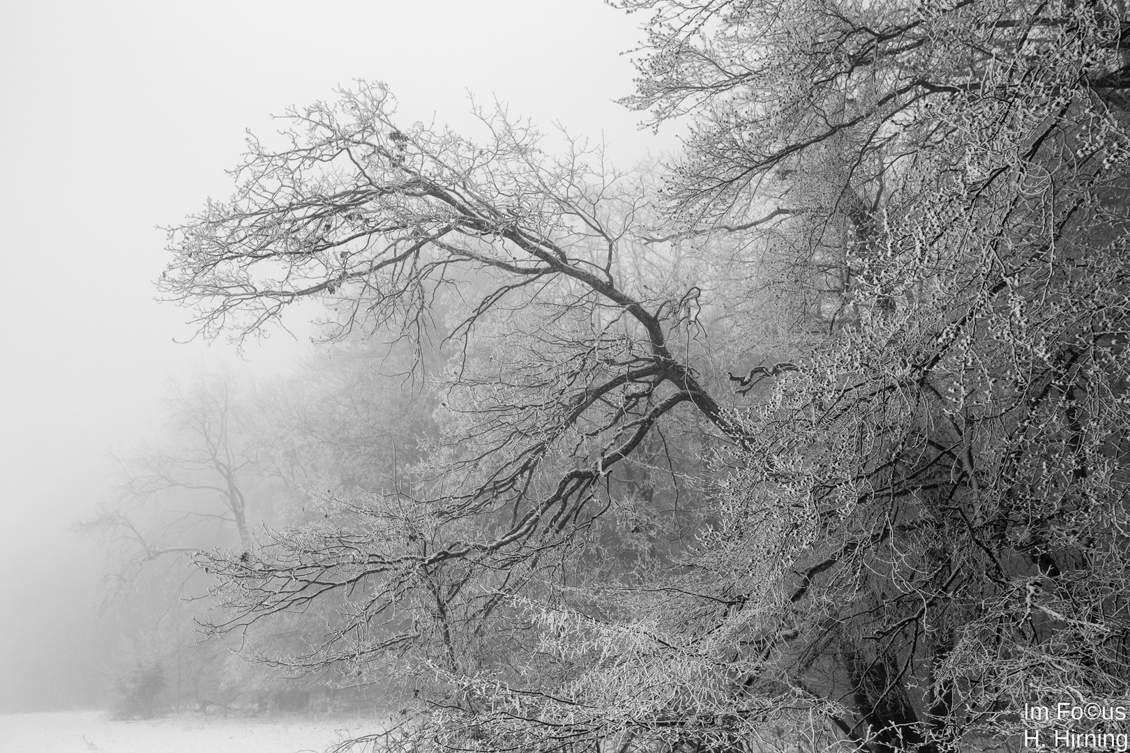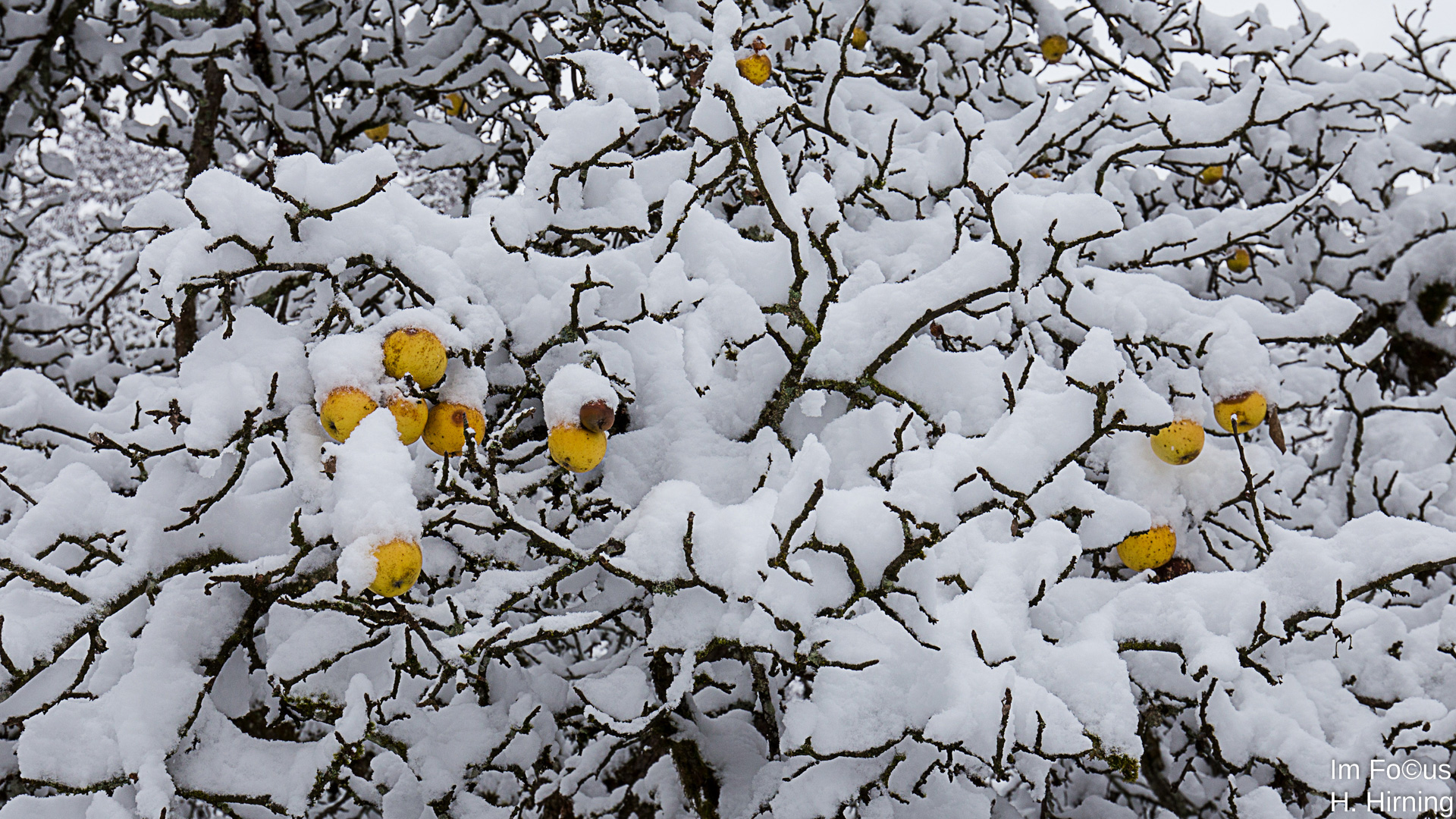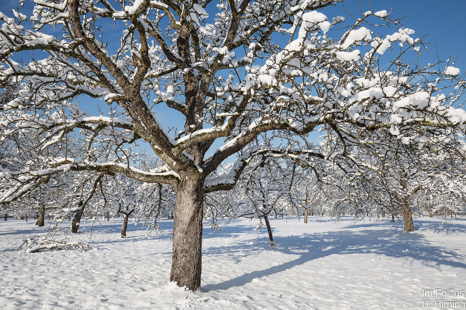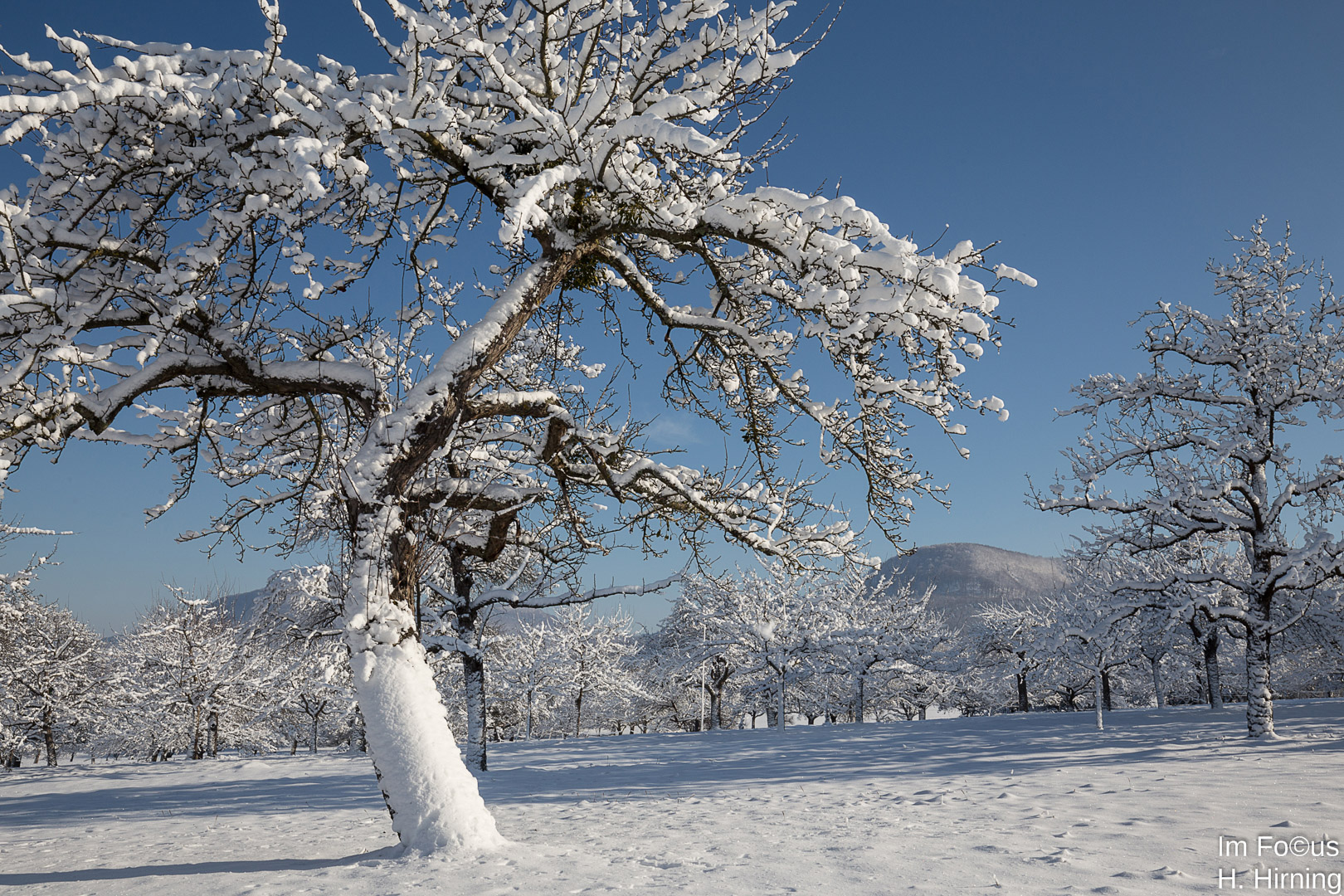 Bei der Anfahrt war es noch dunkel, als ich diese Nebenstraße passierte. Dies ist der Zustand bei der Rückfahrt zwei Stunden später. Man kann sich ausmalen wie die Bedingungen vor 50 Jahren gewesen sein müssen, als auf der Alb nicht nur 30, sondern hundert Zentimeter Schnee üblich waren.