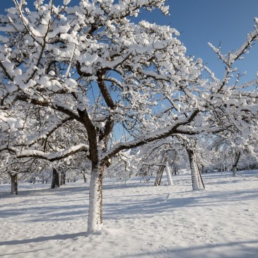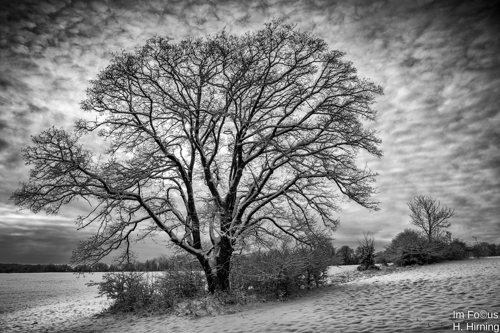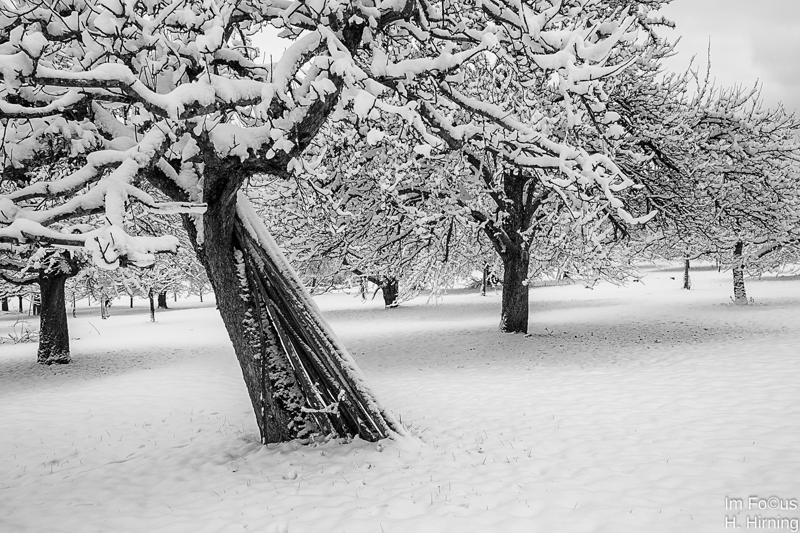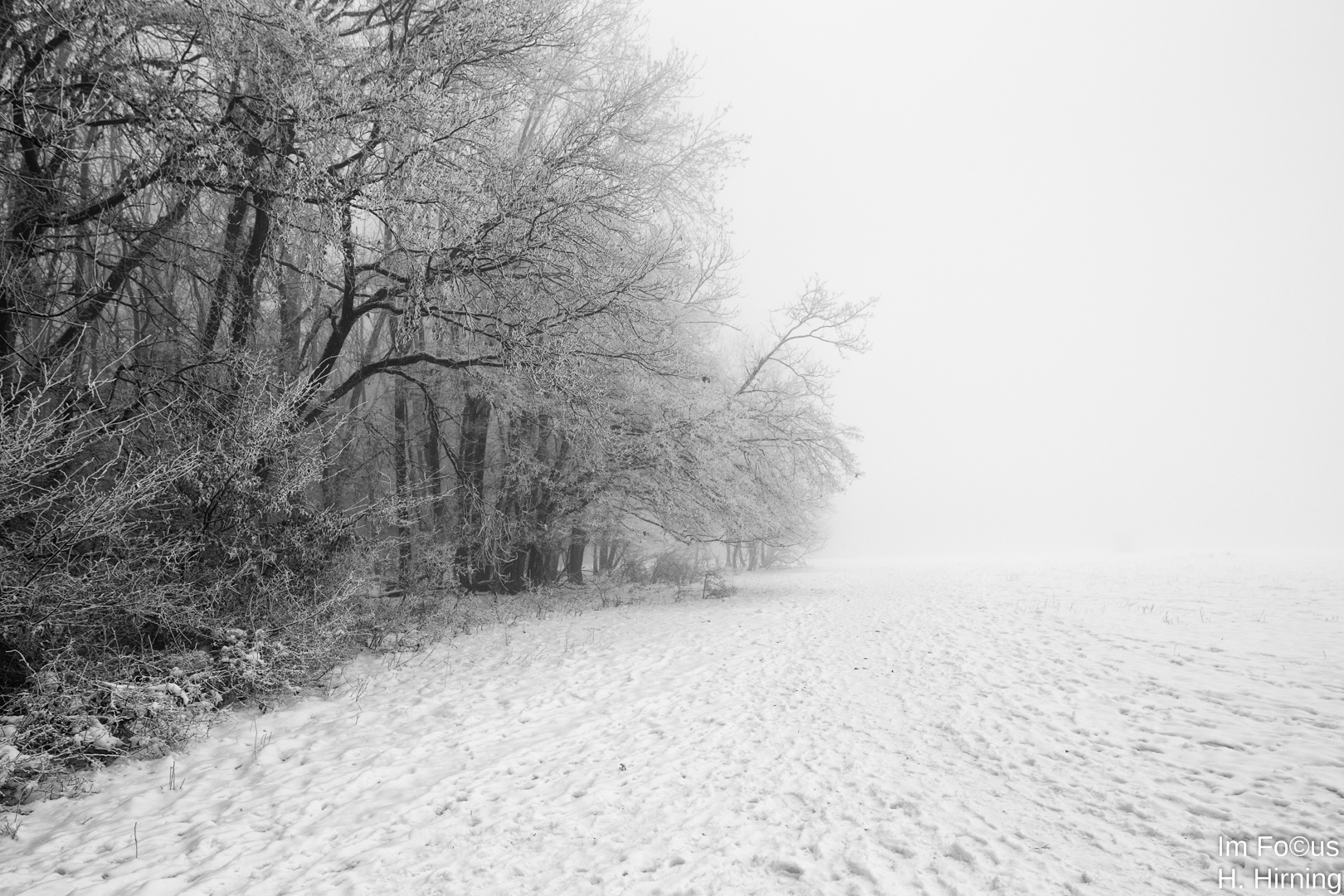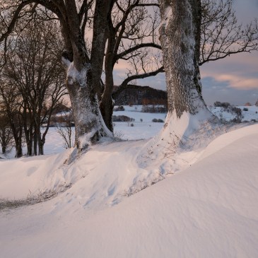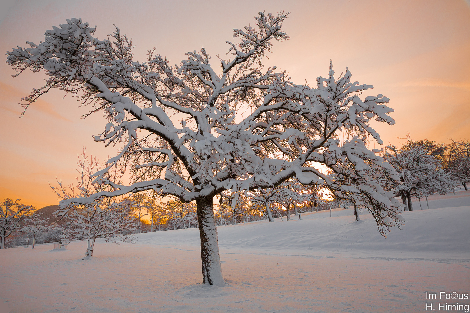 Bei der Anfahrt war es noch dunkel, als ich diese Nebenstraße passierte. Dies ist der Zustand bei der Rückfahrt zwei Stunden später. Man kann sich ausmalen wie die Bedingungen vor 50 Jahren gewesen sein müssen, als auf der Alb nicht nur 30, sondern hundert Zentimeter Schnee üblich waren.