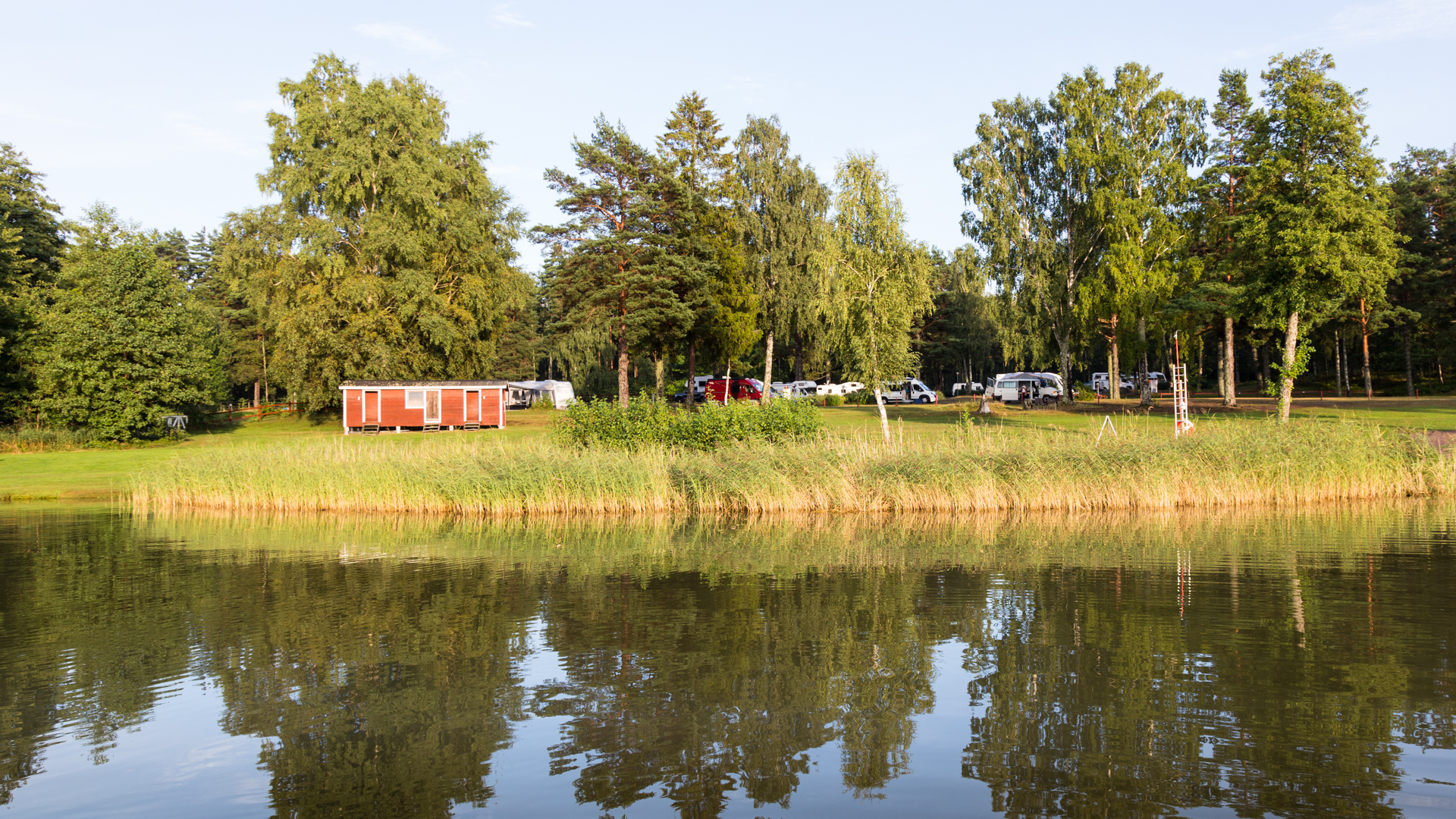 17. und 18. August 2021, Källbukten: Unweit der Stelle, wo der Götakanal die Ostküste erreicht, fuhren wir von Söderköping aus hinaus in den Schärengarten, der sich vor St. Anna weit in die Ostsee hinein erstreckt. Der erste Campingplatz, den wir anfuhren, überzeugte uns so, dass wir blieben.