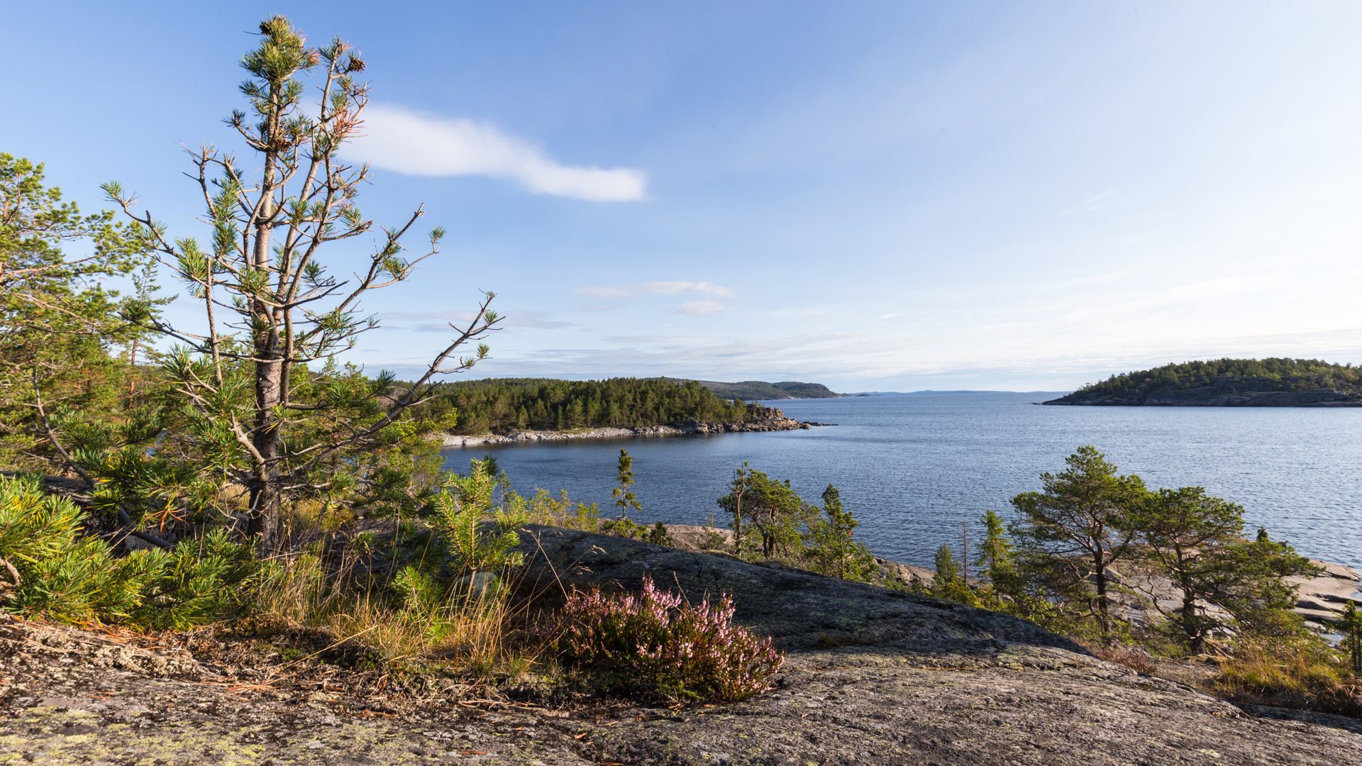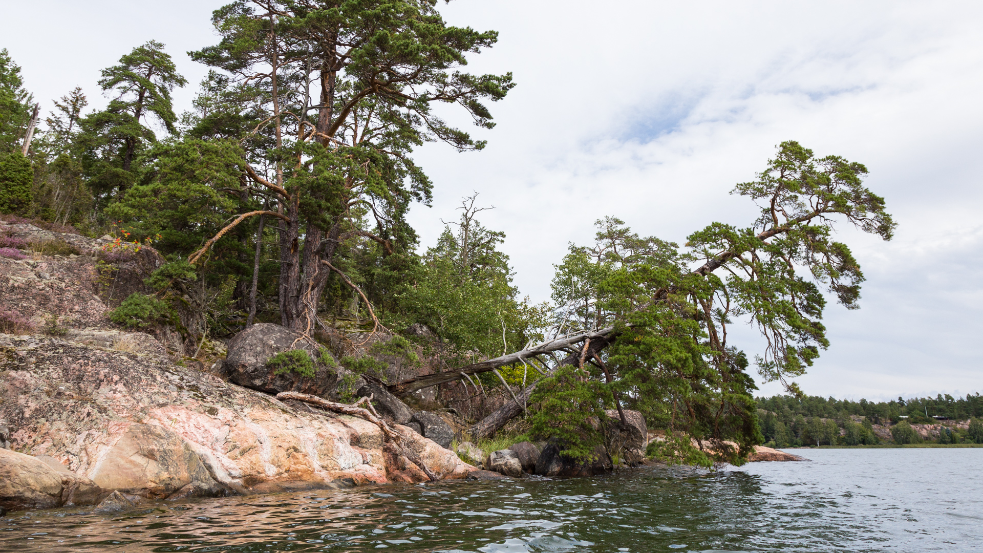 Die Bebauung der Schären beschränkt sich auf den festlandsnahen, bewaldeten Bereich. Je näher man dem offenen Meer kommt, desto weiter geht die Bewaldung zurück. Schließlich ragen nur noch kahle Inseln aus dem Wasser.