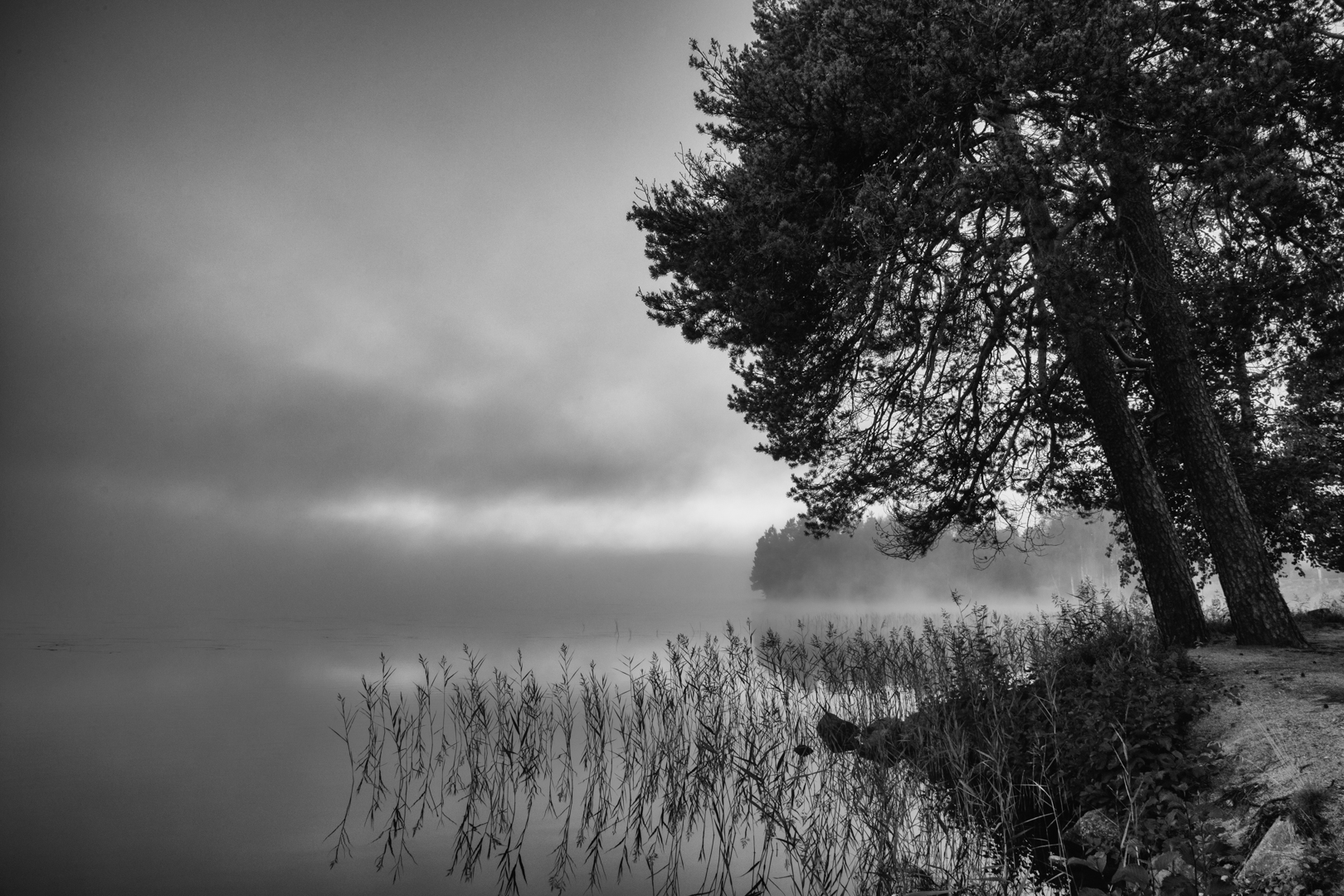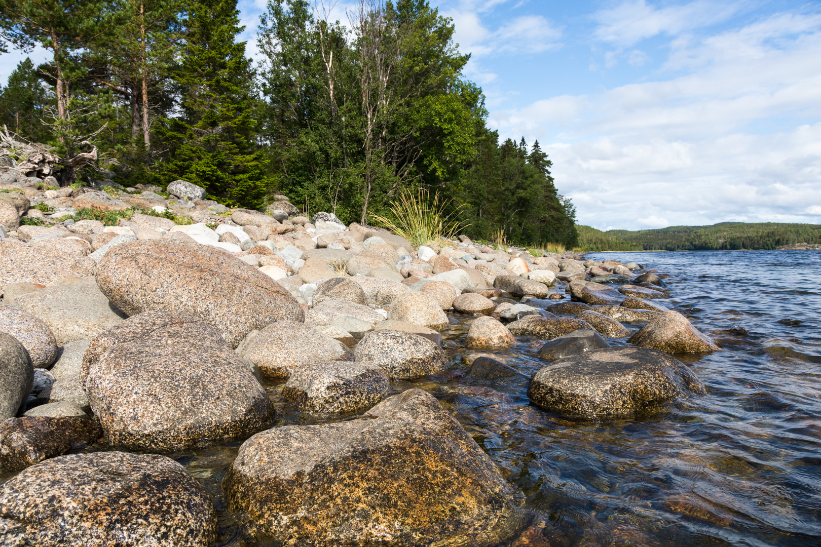 Am späten Nachmittag zog ein heftiges Gewitter mit ergiebigem Platzregen auf. Nach dem Regen hing Nebel zwischen den bewaldeten Schären und die untergehende Sonne zauberte daraus eine ganz besondere Lichtstimmung.