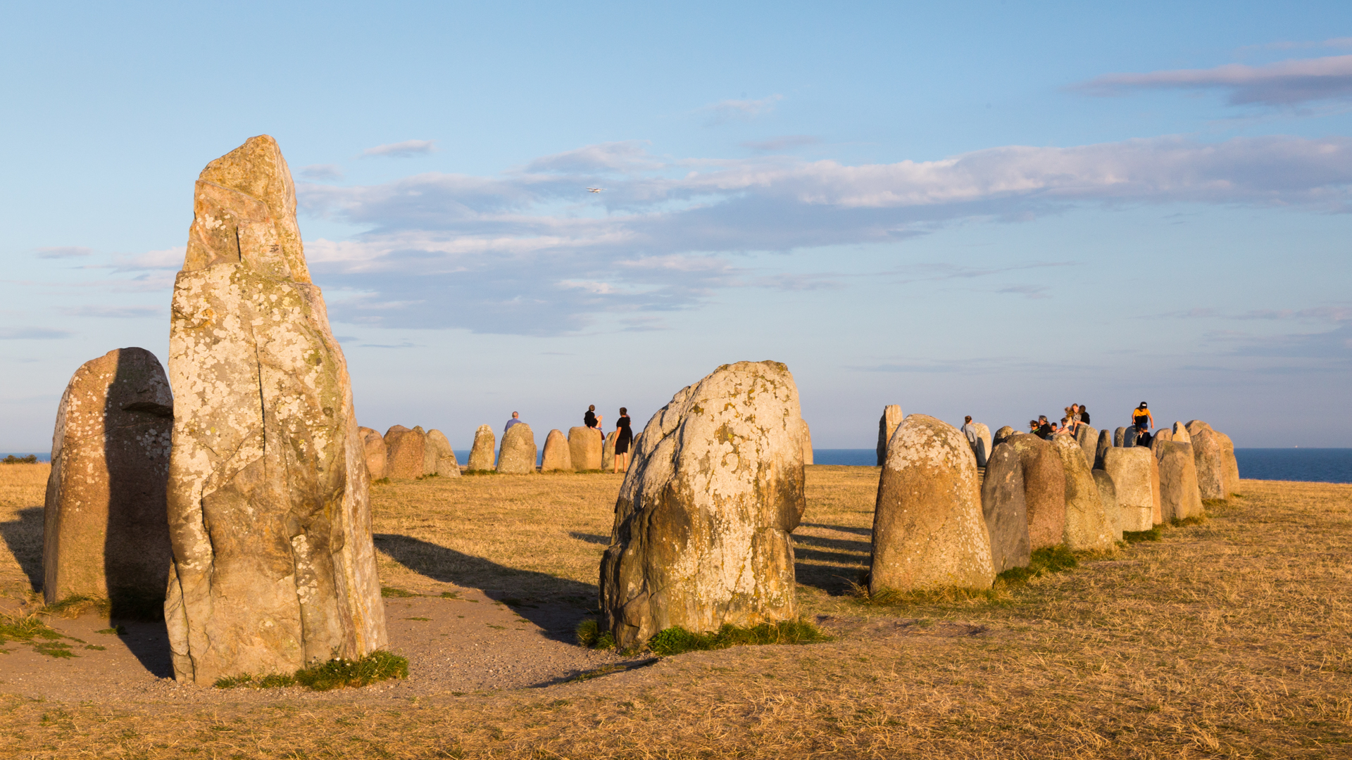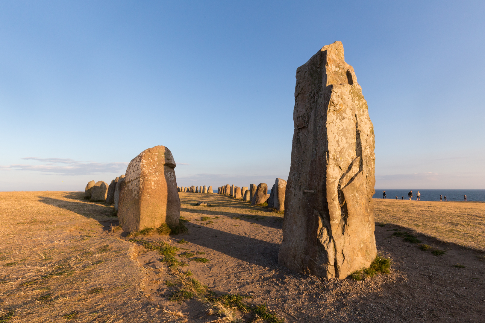 Mittwoch, 11. August 2021: Auf einem Dünenrücken, der zur Ostsee hin steil abfällt, liegt oberhalb des Örtchens Kaseberga die größte Schiffsetzung Skandinaviens, Ales Stenar. Aus 59 Felsblöcken wurde hier ein Langschiff mit 67 m Länge und 19 m Breite gestaltet. Die Steine bringen es auf eine Masse zwischen 0,5 und 1,8 Tonnen.