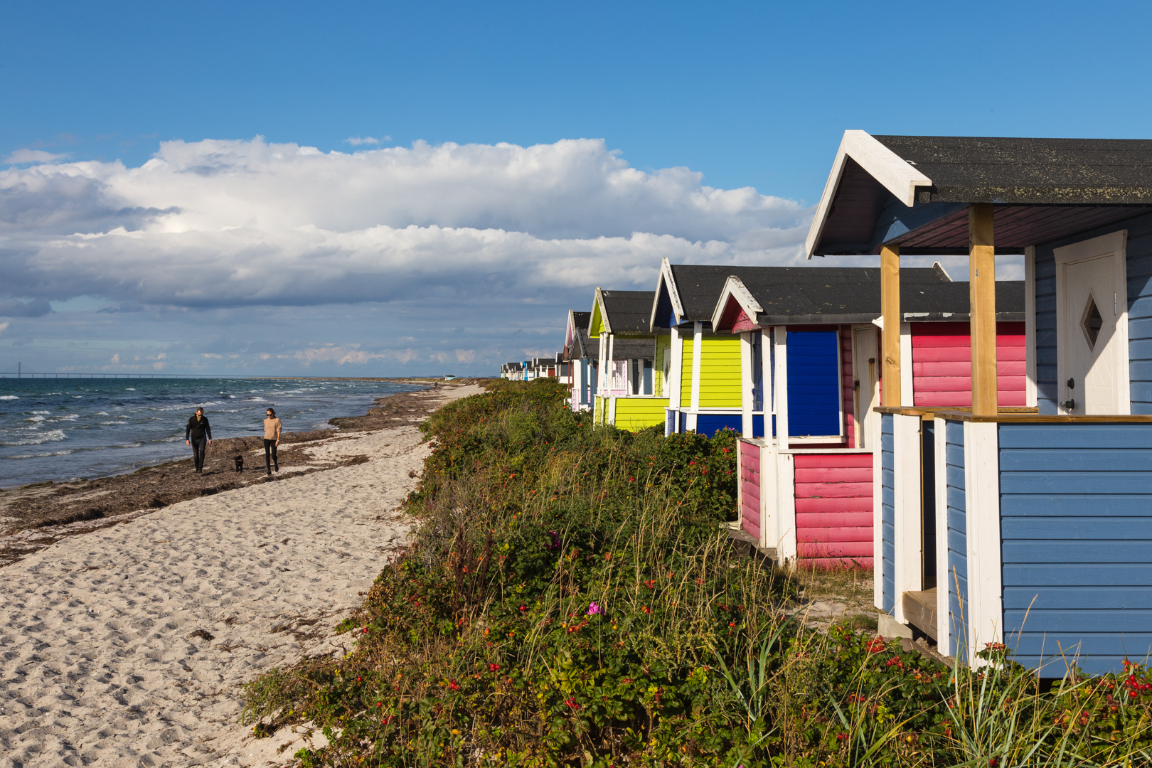 Heute sind es die Badegäste im Sommer, die der Badewanne Malmös den Wohlstand bringen. Der kilometerlange Sandstrand wird von bunten Badehäuschen gesäumt. Am Horizont kann man links überm Meer die gewaltige Öresundbrücke erkennen, die Malmö mit Kopenhagen verbindet.