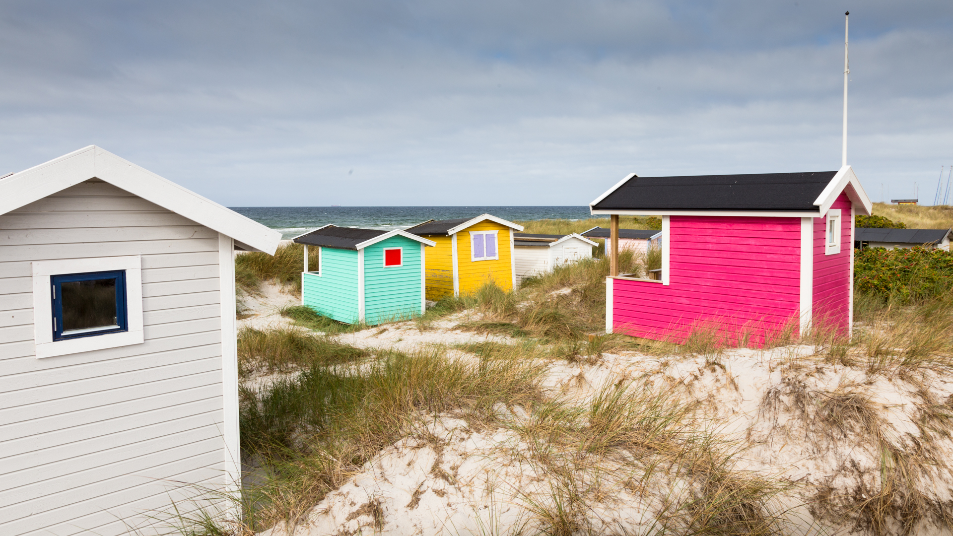 Dennoch bilden die Badehäuschen bunte Farbtupfer in der Landschaft und betreibt der Wind sein kreatives Spiel.