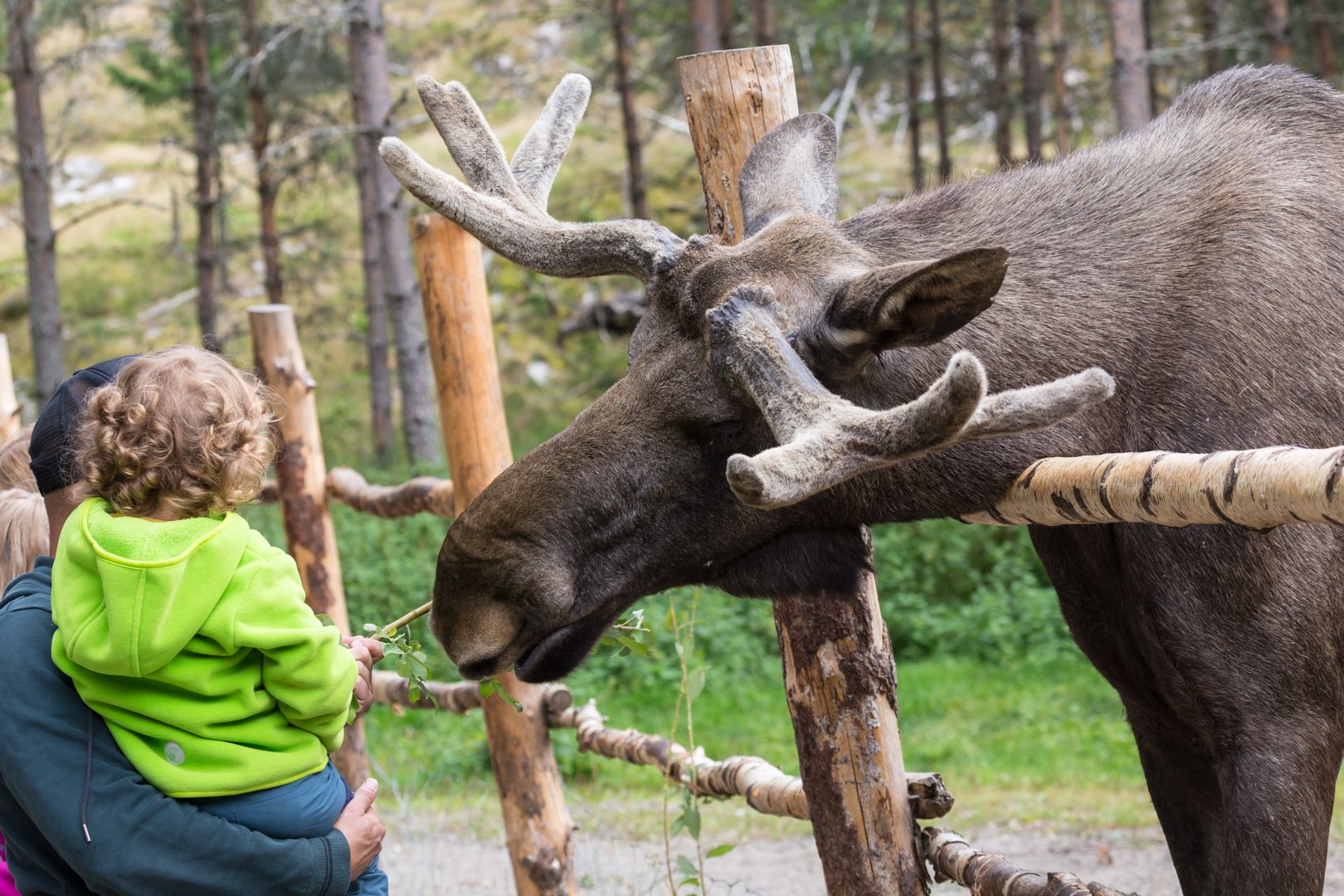 Auf dem Weg an die Westküste passierten wir in Ed die Dalslands Moos Ranch. Auf einer 10 Hektar großen Waldfläche werden hier 8 zahme Elche in einem Tierpark gehalten. Es war gerade Fütterungszeit, also nutzt ich die Chance einmal Elche aus der Nähe zu betrachten.