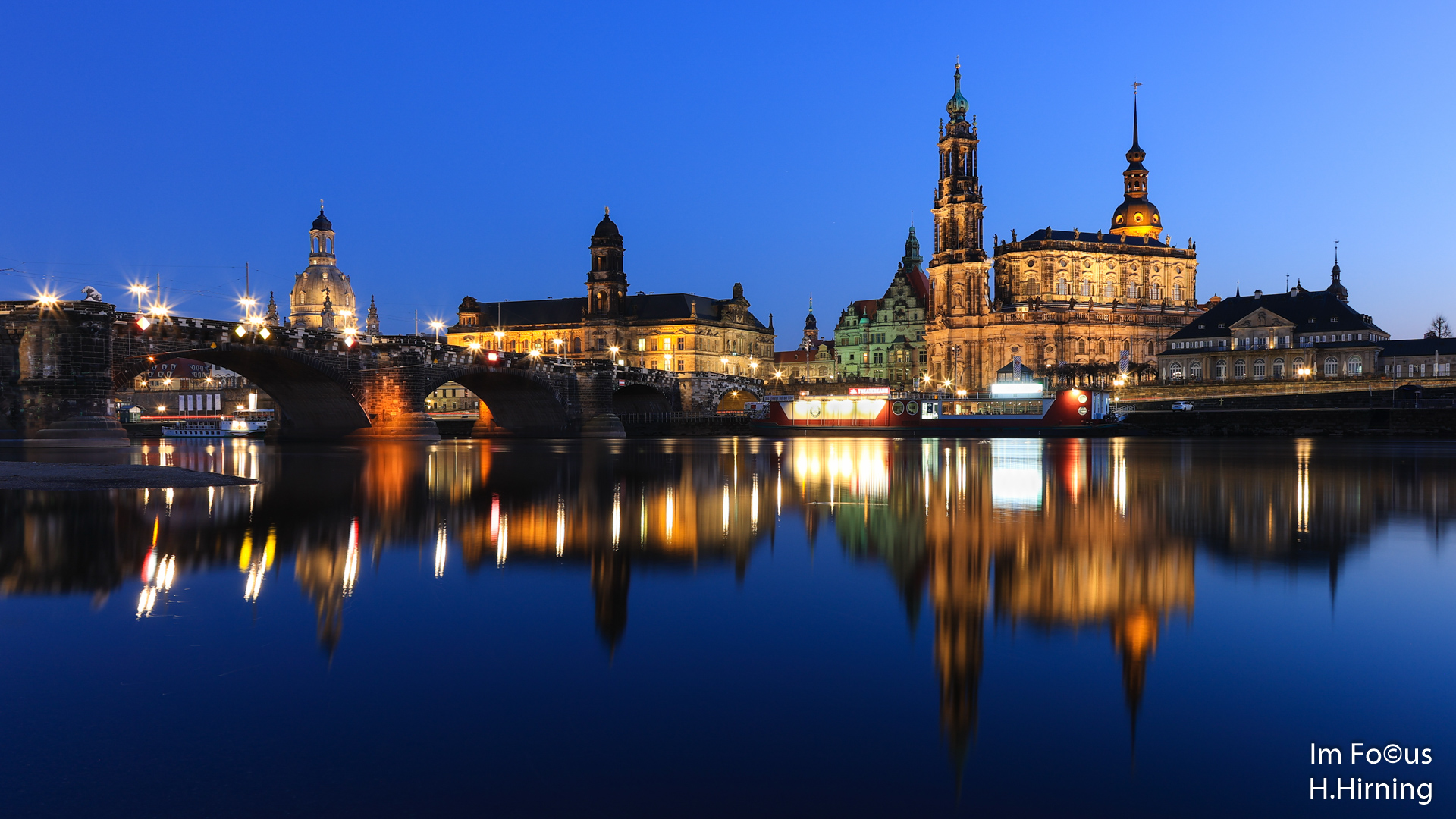 2. Hallo Horst, das zweite Bild mit der Spiegelung am Morgen gefällt mir am Besten. Die glatte Oberfläche des Flusses und der braune Gesamtton des Bildes strahlen Ruhe und Gelassenheit aus. Im Unterschied dazu wirkt die Spiegelung zur blauen Stunde auf mich wie Lightshow, unterstützt noch vom satten Blau des Nachthimmels. Hier zeigt Dresden, dass es auch mitspielen kann im Effektwettbewerb der Städte. Liebe Grüße aus dem sonnigen Süden (nein nicht München sondern z.Zt. Südfrankreich), Jürgen.