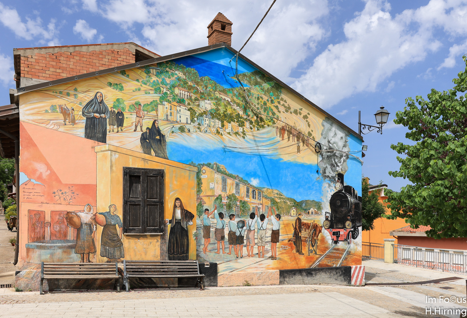 Eine Ecke weiter, in einem Kaff Namens Cairo, gönnten wir uns in einem kleinen Straßencafe einen Cappuccino. Anlass war die in die Jahre gekommene Schmalspurbahn, die für diesen Ort wohl einmal eine größere Bedeutung hatte. Diese Interpretation legt zumindest das überdimensionale Gemälde an einer Hausfassade nahe. Ob die Bahn heute jedoch überhaupt noch in Betrieb ist, schien uns fraglich. Vielleicht im Sommer als Touristenattraktion.