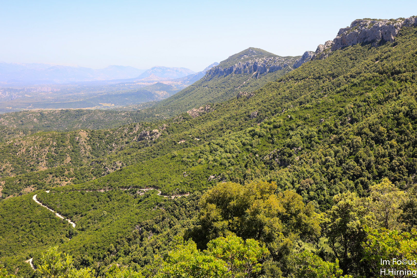 Hinter Dongali gewinnt die Straße schnell an Höhe und windet sich in engen Kurven aufwärts, bis auf über tausend Metern die Passhöhe Genna Silana überschritten wird. Genauso kurvenreich geht es auf der Südseite wieder abwärts, bis in die Ebene um Truli.