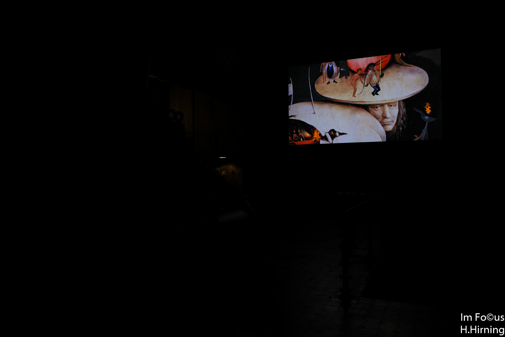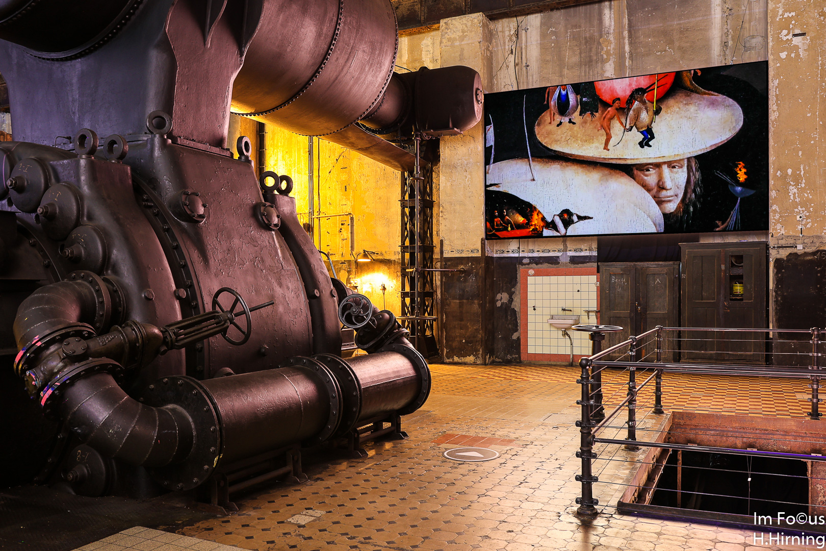 Für mich passt das surreale Motiv auf der Videowand hervorragend zum Ambiente der Gebläsehalle, die inzwischen ja selbst aus der Realität gefallen ist.