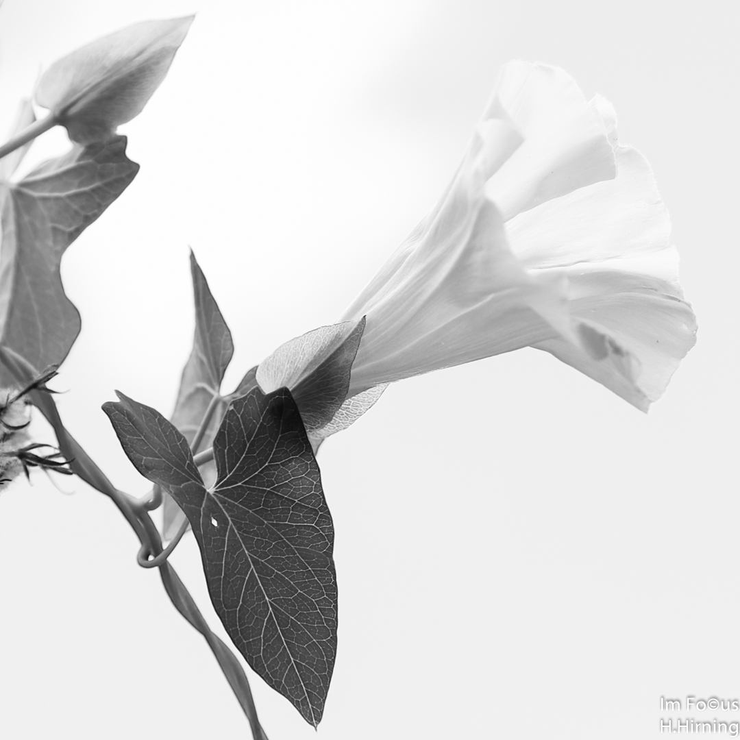 Die nachfolgende Galerie ist so aufgebaut, dass zuerst die Originalaufnahme kommt. Diese wurde in der Regel mit einer Blendenstufe überbelichtet, um eine anschließende High Key – Entwicklung zu begünstigen. Daran schließen sich 1 – 2 SW-Entwicklungen an. Das SW-Bild der letzten Aufnahme wurde im Unterschied dazu Low Key entwickelt. Dazu entschied ich mich wegen des Hintergrunds und des Gegenlichts.