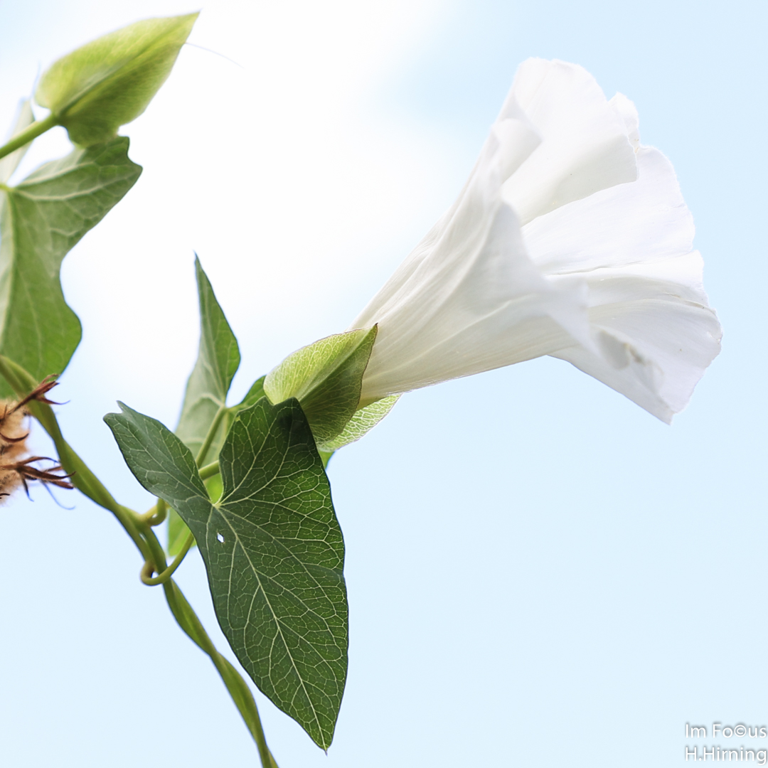 Im letzten Beitrag habe ich mich mit der Wegwarte beschäftigt. Diesmal zeige ich Aufnahmen von der echten Zaunwinde. Mich fasziniert an dieser Pflanze, dass sie einerseits über ein sehr robustes „Tragseil“ und formschöne Blätter verfügt, andererseits aber große und zugleich zarte Blütenkelche hervorbringt, die sie in vollendeter Form gen Himmel reckt und die auch nachts geöffnet bleiben. (Wahrscheinlich waren dies die Vorbilder für die Kelchstützen des Tiefbahnhofs Stuttgart 21. 😉)