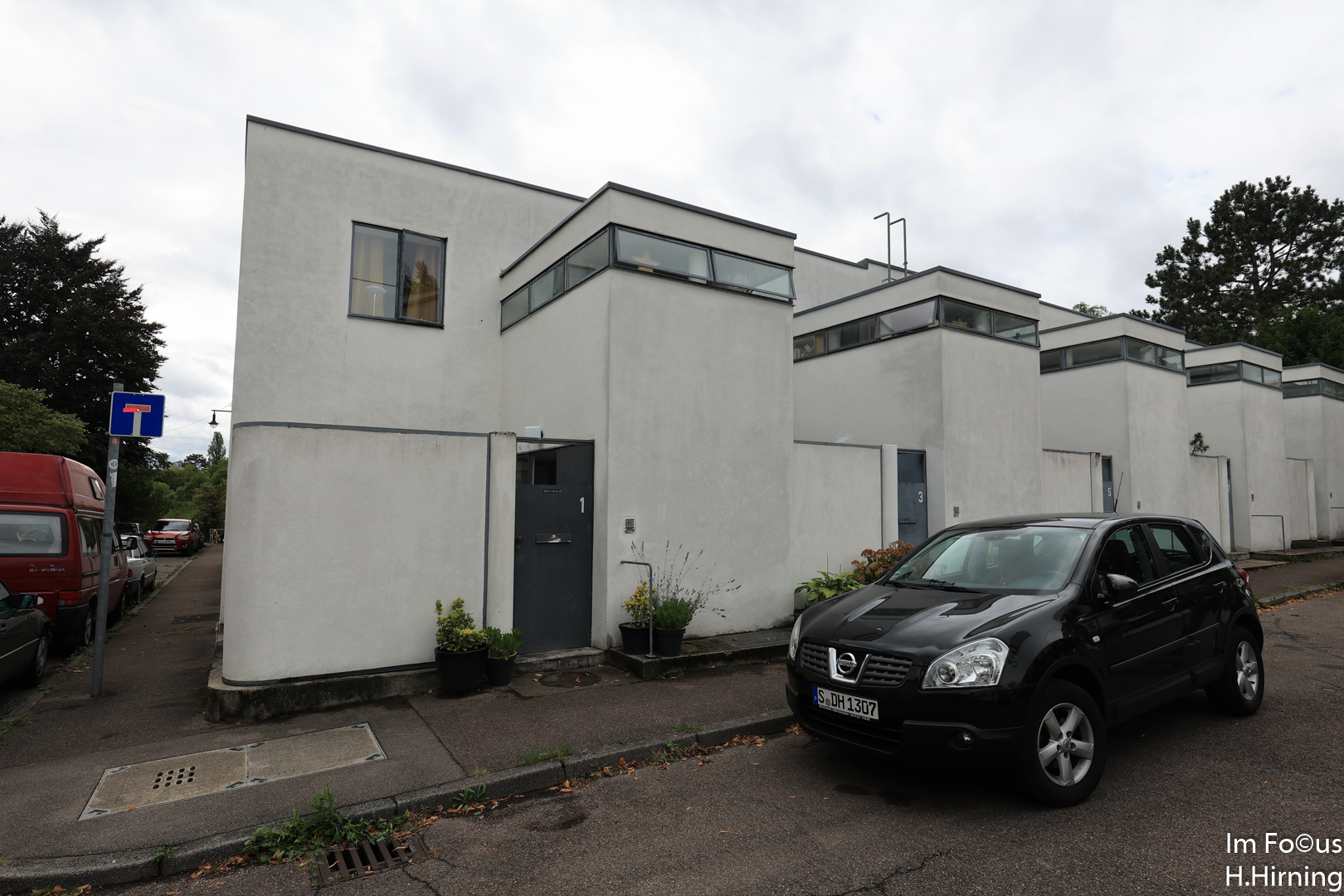Die an eine Fabrikhalle erinnernden Reihenhäuser unten entwarf Mart Stam, der jüngste Architekt, der in der Weissenhofsiedlung bauen durfte. Der niederländische Architekt und Designer hatte ein wechselvolles Leben, das ihn wiederholt zwischen der DDR und dem Westen pendeln ließ.
