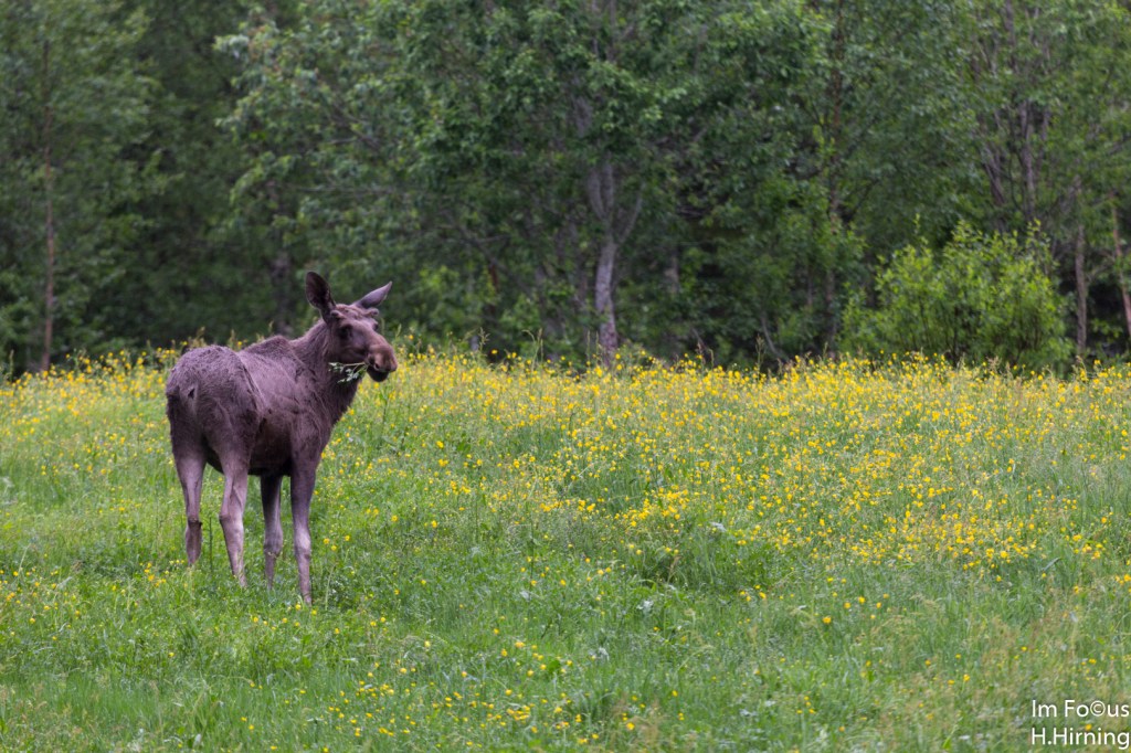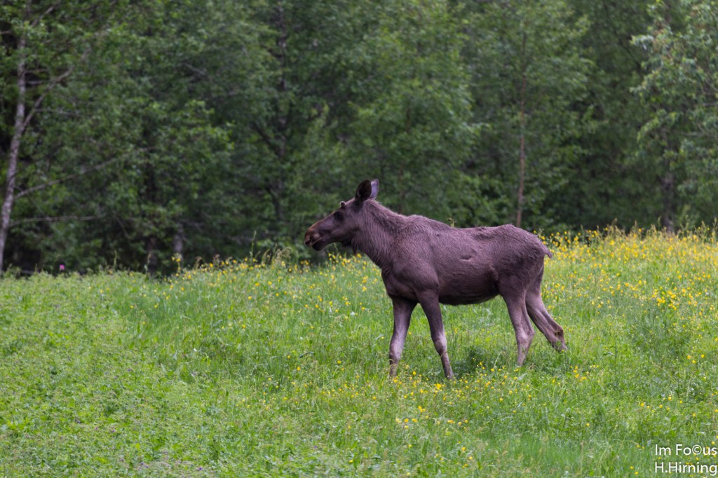 Wir waren nun den dritten Tag auf der E6 in Richtung Oslo unterwegs. Am Nachmittag beschlossen wir einen Übernachtungsplatz abseits der Hauptroute zu suchen. Die 773 brachte uns nach Osten. Selten, dass uns ein Fahrzeuge entgegenkam. Nach kurzer Strecke entdeckten wir einen Elch beim Äsen. Es war der neunte, den wir auf dieser Fahrt zu Gesicht bekamen und der erste, der sich die Zeit für ein Foto nahm. Kaum war der Elch weg kam der große Schreck. Ich hatte den Einstellungsbereich für den Autofokus an meinem Tele nicht kontrolliert. So wurden die Bilder nicht absolut scharf. Dennoch wenigstens ein „Belegbild“.