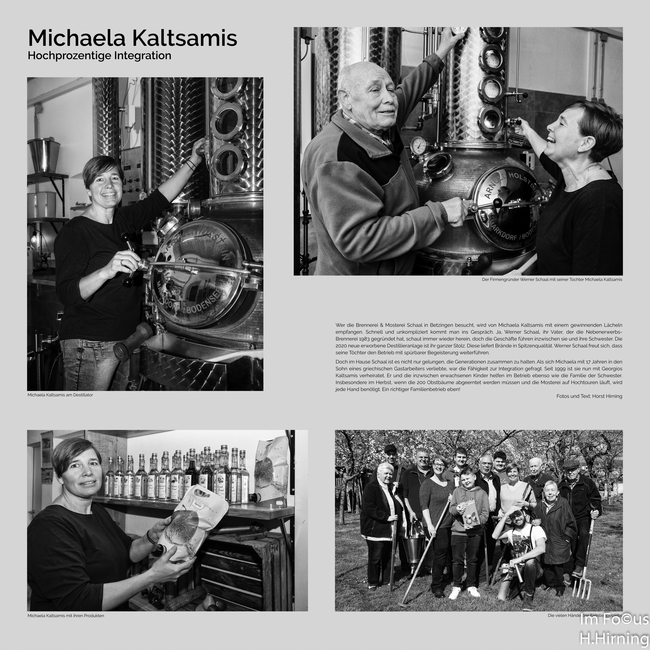 Wer die Brennerei & Mosterei Schaal in Betzingen besucht, wird von Michaela Kaltsamis mit einem gewinnenden Lächeln empfangen. Schnell und unkompliziert kommt man ins Gespräch. Ja, Werner Schaal, ihr Vater, der die Nebenerwerbs- Brennerei 1983 gegründet hat, schaut immer wieder herein, doch die Geschäfte führen inzwischen sie und ihre Schwester. Die 2020 neue erworbene Destillieranlage ist ihr ganzer Stolz. Diese liefert Brände in Spitzenqualität. Werner Schaal freut sich, dass seine Töchter den Betrieb mit spürbarer Begeisterung weiterführen.
