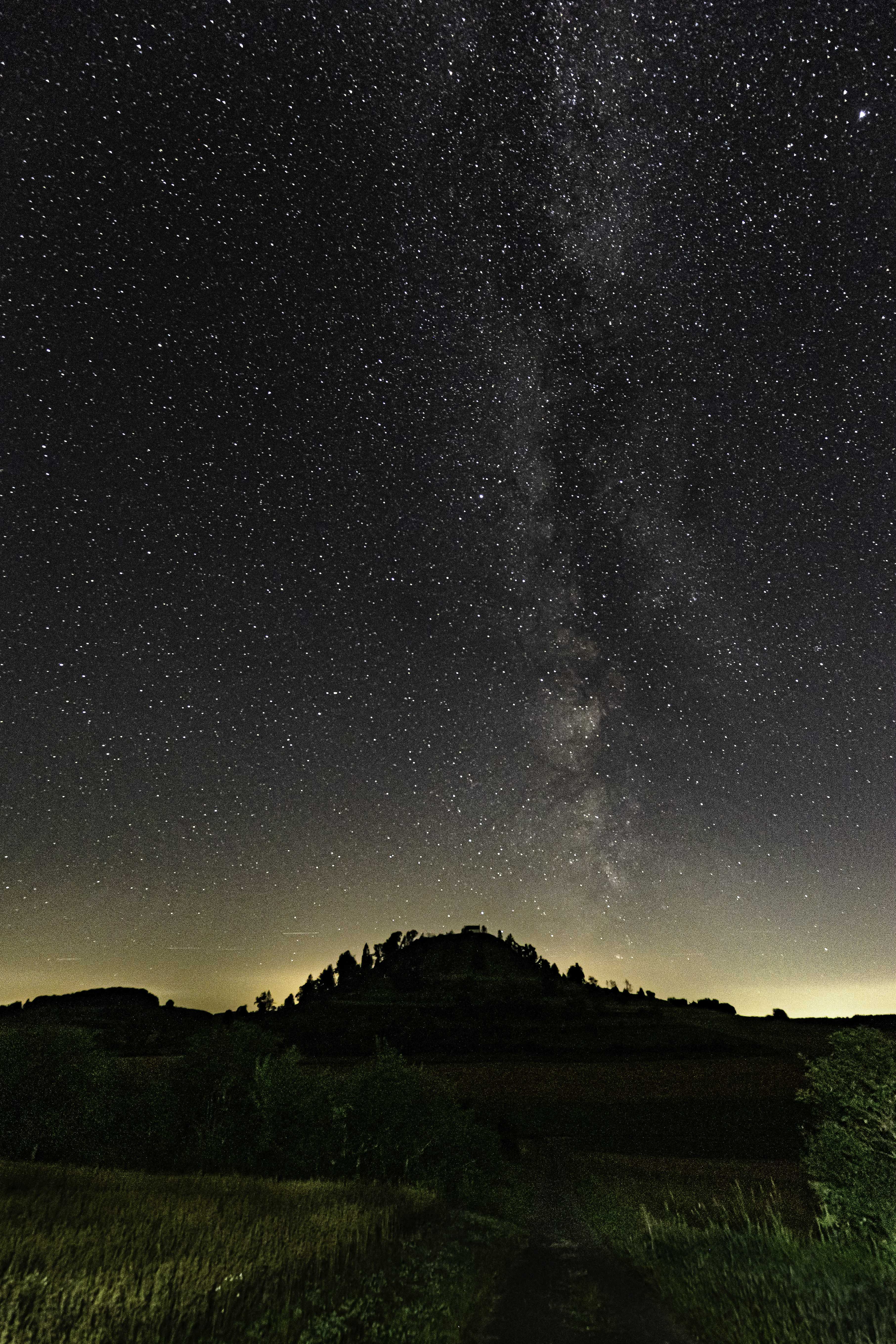 Das Bild zeigt die Milchstraße über dem Kornbühl (Salmendinger Kapelle). Um etwas mehr von der Landschaft zu erfassen, habe ich den Vordergrund versuchsweise mit der Taschenlampe etwas aufgehellt.