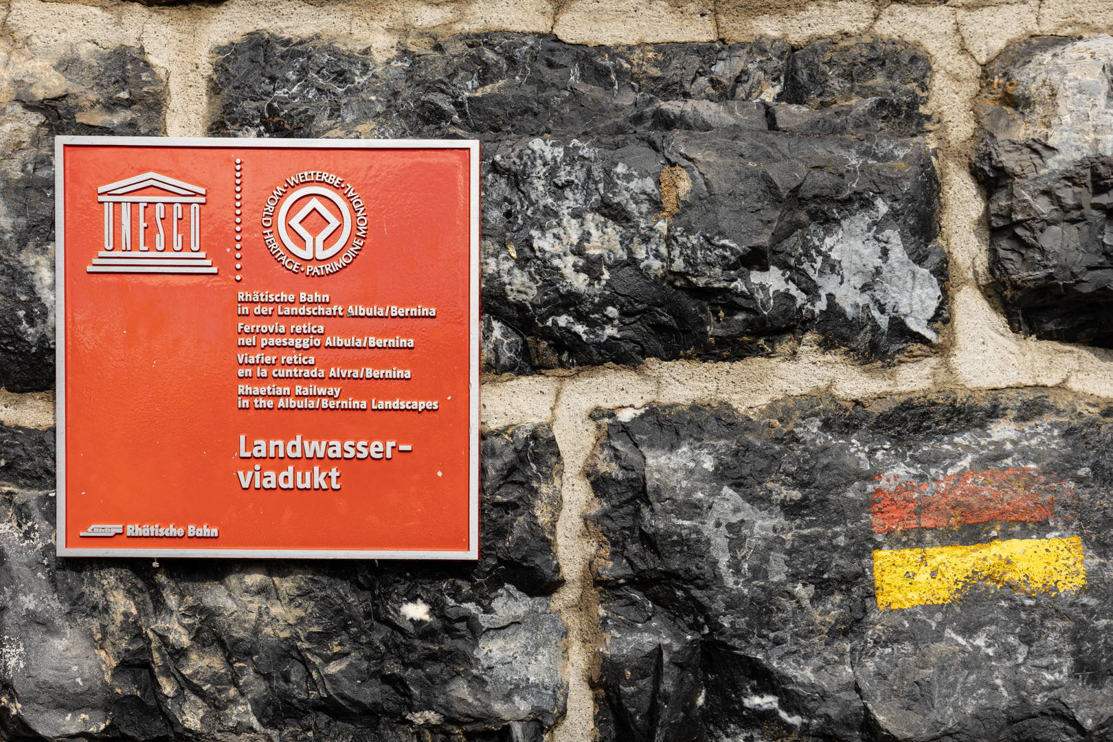 Das Landwasserviadukt gehört als Teil der Albula- und Berninalinie zum Weltkulturerbe der UNESCO. Der Brückembau wurde im März 1901 begonnen und bereits im Oktober des Folgejahres in Betrieb genommen. Auch bei diesem Bauwerk kamen neue Verfahren zum Einsatz. So wurden die Pfeiler erstmals ohne äußeres Gerüst hochgezogen.