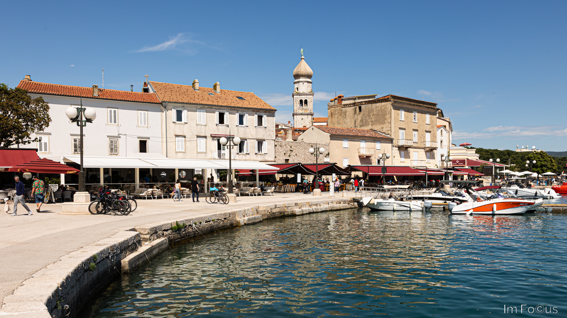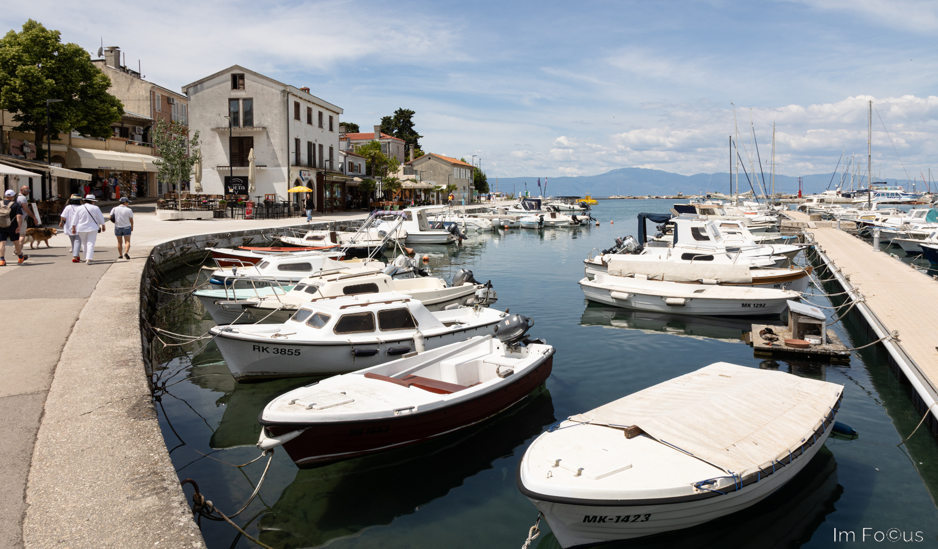 Nach dem überraschenden „Fototermin“ mit den Handwerkern fuhren wir nach Malinska weiter. Der nette Badeort, der sich gefällig um einen langgezogenen Hafen gruppiert, war bereits in der Vorsaison gut besucht, obgleich die vielen Lokale noch nach Kundschaft gierten.