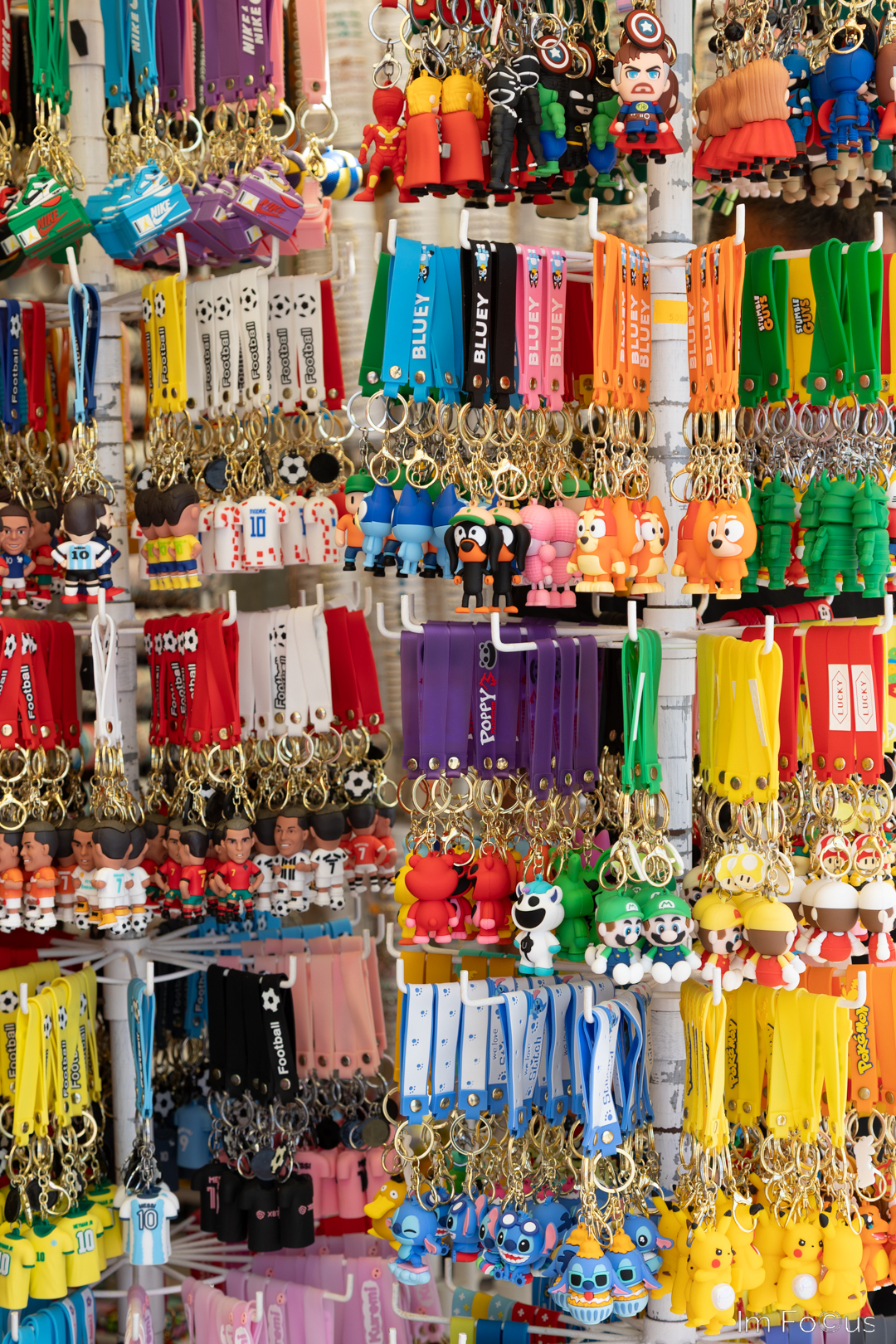 Die Betreiber der Jahrmarktstände am Ende der Hafenanlagen waren noch mit der optimalen Platzierung ihrer farbenprächtigen Ware beschäftigt. Kundschaft ließ hier noch auf sich warten.