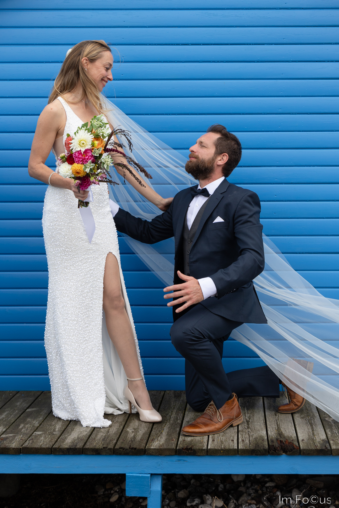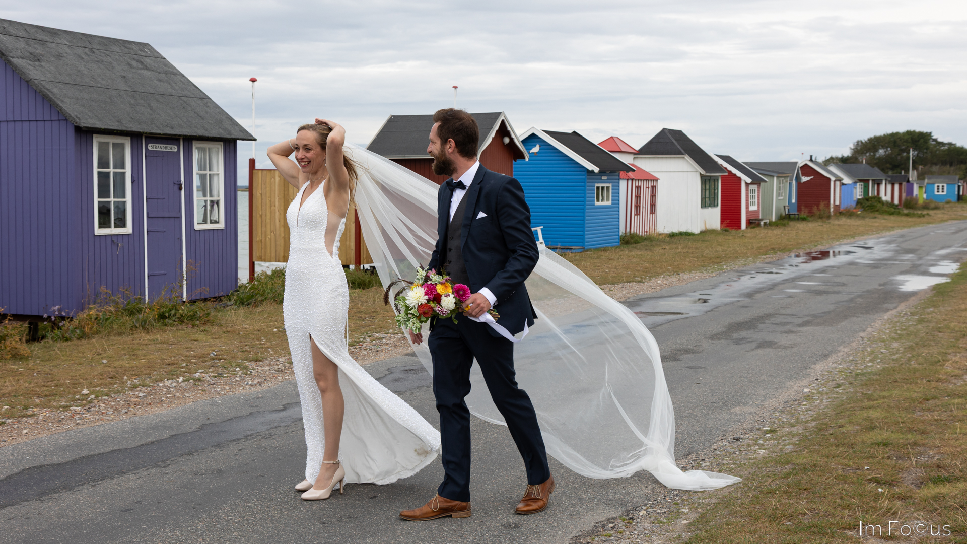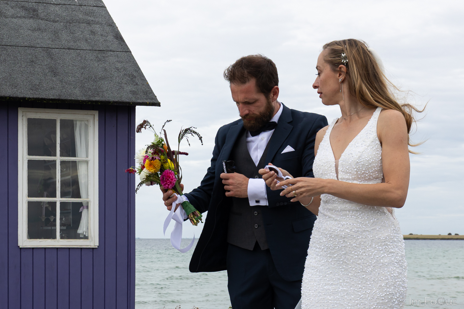 Die Insel AErö ist als Hochzeitsinsel und für ihre Badehäuschen bekannt. Klar, dass da die Badehäuschen die richtige Kulisse für die Hochzeitsfotos abgeben.