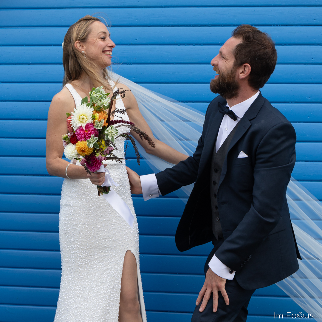 Aber schließlich hatte frau sich auch mit dem Wind arrangiert. Ein gutes Zeichen für stürmische Tage, die eine Ehe durchaus zu bieten hat. Wir gratulieren und wünschen nochmals alles Gute für die gemeinsame Zukunft.