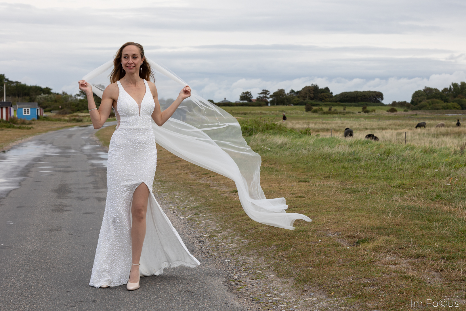 Auch der Wind war begeistert und verfing sich im Schleier der Braut. Die hatte alle Hände voll zutun, damit ihr der Schleier nicht vom Kopf geweht wurde.
