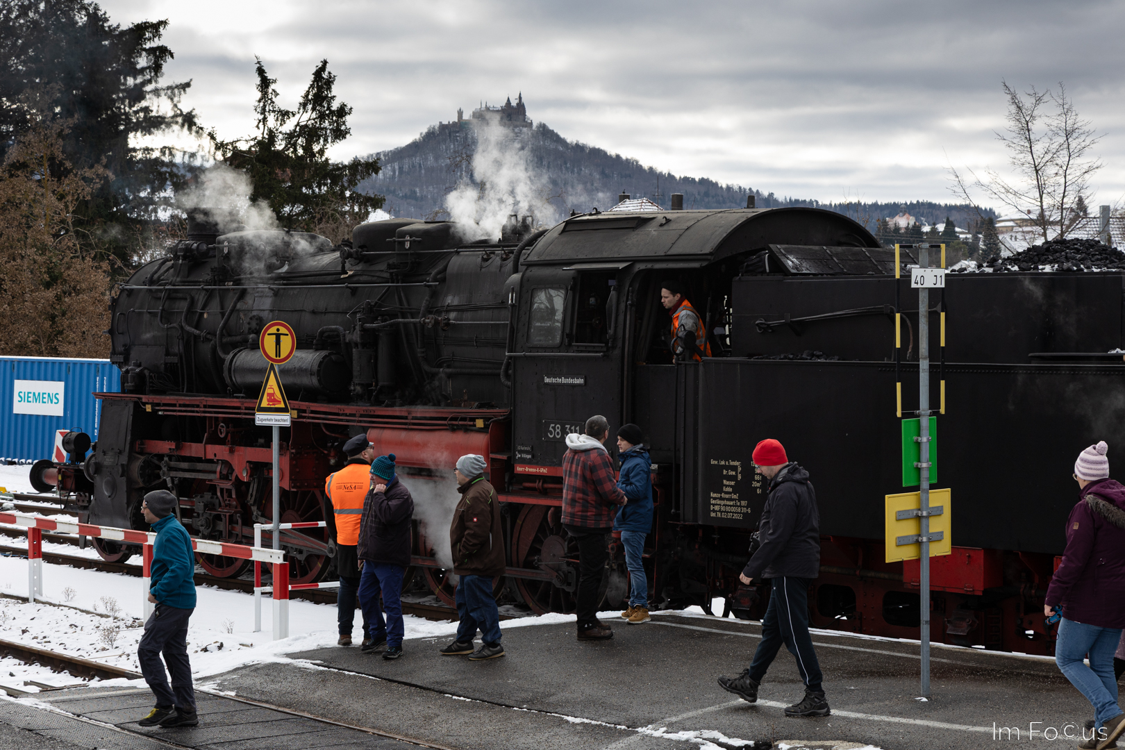 In Hechingen rundete der Hohenzollern das historische Bild ab. Wie zuvor in Eyach stand auch in hier die Feuerwehr bereit, um die Wasservorräte aufzufüllen. Es ist schon ein gewaltiger Aufwand, eine solche historische Dampfzugfahrt logistisch abzusichern. Doch die Begeisterung bei Jung und Alt ist groß.