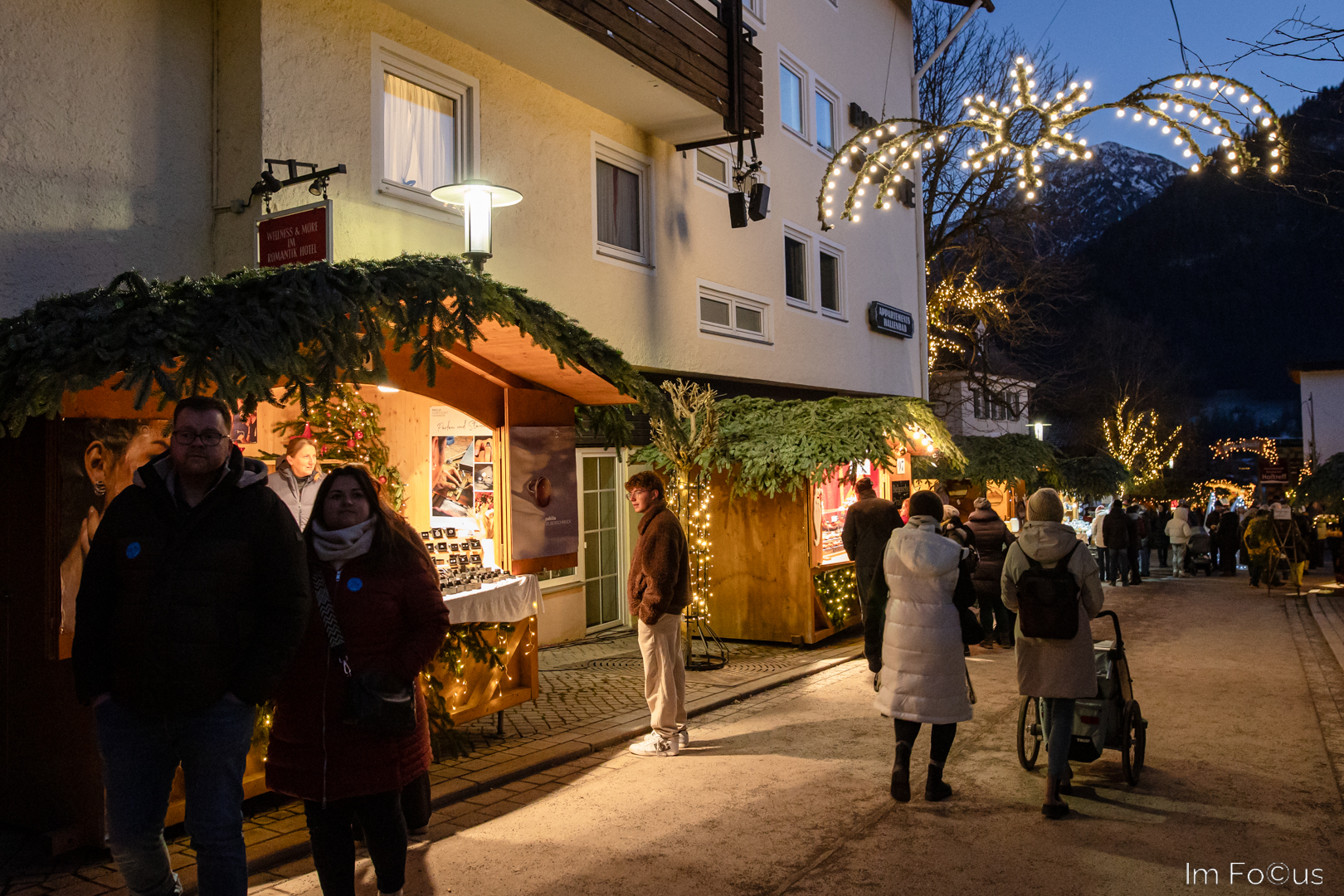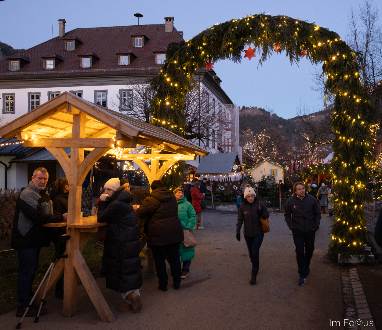 Zuerst kostet er 9 € Eintritt pro Nase und das ist nicht ganz wenig. Dafür zieht sich der Weihnachtsmarkt durch den ganzen alten Ortskern. Neben den Marktständen bringen sich auch normale Geschäfte mit ihrem Angebot ein. Die Straßen sind weihnachtlich geschmückt und beleuchtet. Man hat das Gefühl, dass es ein Weihnachtsmarkt der ganzen Gemeinde ist. Dies gibt ihm ein eigenes Flair. Ein umfassendes Begleitprogramm unterstreicht den besonderen Anspruch des Veranstalters. Dieses reicht von einer Krippenausstellung über Alphornbläser bis zum großen Weihnachtsumzug.
