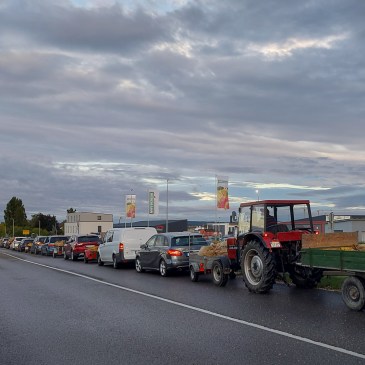 Doch der Samstag hat alles bislang dagewesene übertroffen. Bereits um 7:30 Uhr morgens betrug die Schlange ca. 600 m und aus allen Himmelsrichtungen kamen neue Fahrzeuge hinzu, meist mit Anhänger. Dies entsprach einer geschätzten Wartezeit von rund 4 Stunden.
