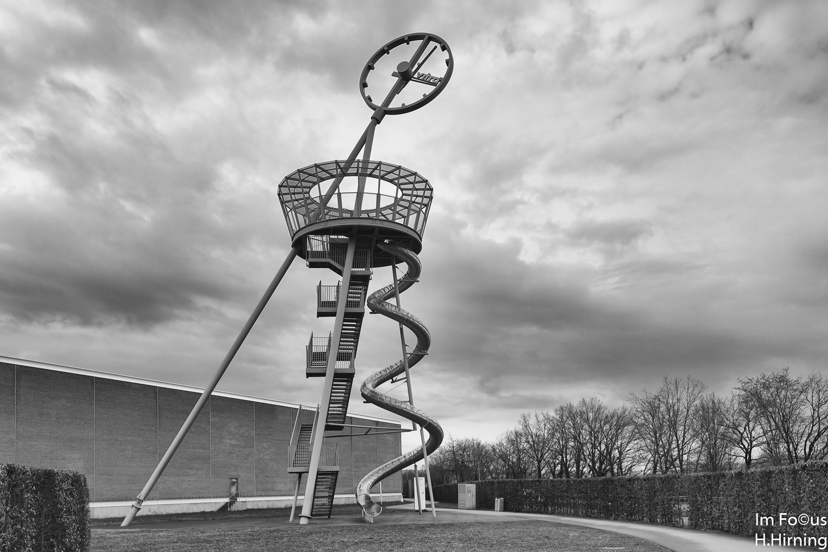 Der Vitra Campus in Weil am Rhein, der für seine architektonischen Superbauten bekannt ist, bietet auch einen Rutschturm der Extraklasse. Bei einer Gesamthöhe von 30,7 m öffnet sich auf 17 m Höhe eine Aussichtsplattform, die Ausgangspunkt für eine 38 m lange Rutschbahn ist.