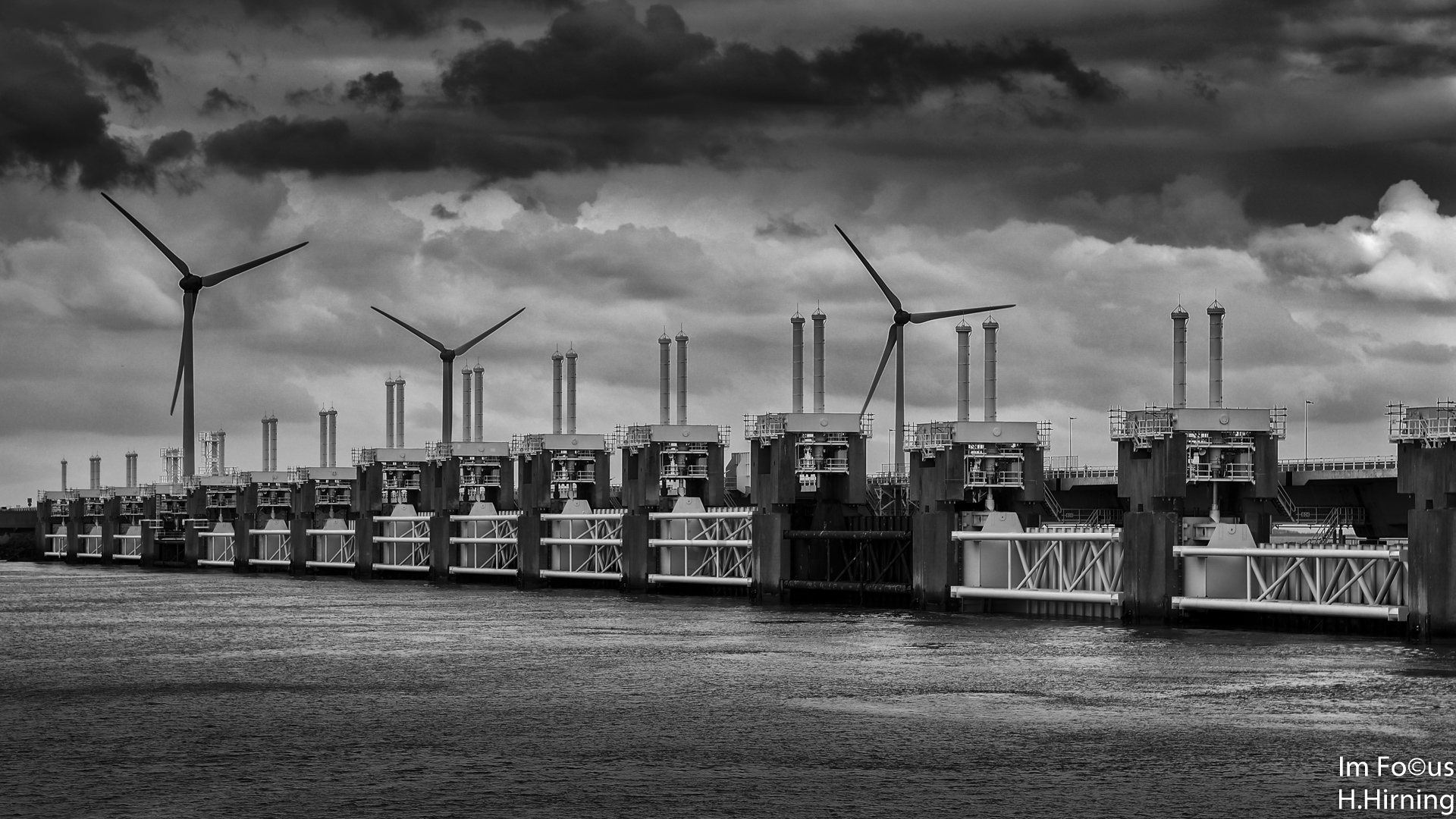 Bei Sturmflut werden die Hubtore des 5 km langen Sperrwerks geschlossen und wirken wie ein Abschlussdeich. Im Normalbetrieb sind die Tore geöffnet, so dass Ebbe und Flut ihr Wechselspiel bis weit hinein ins Land betreiben und den Salzgehalt im Deltabereich konstant halten können.