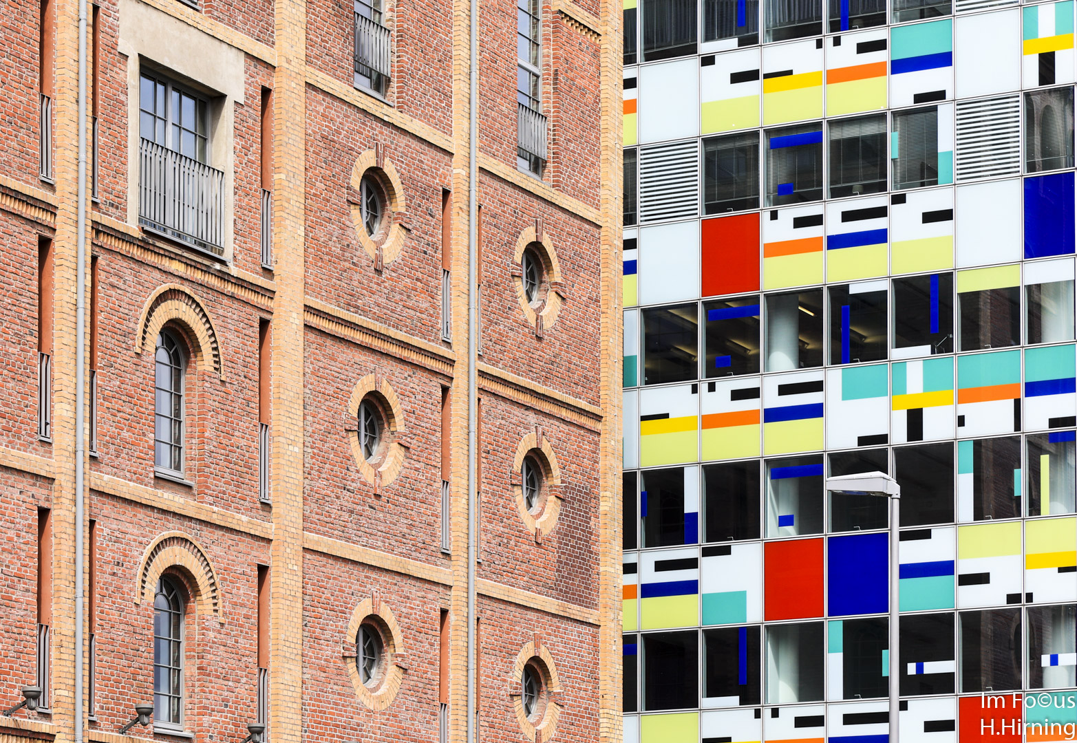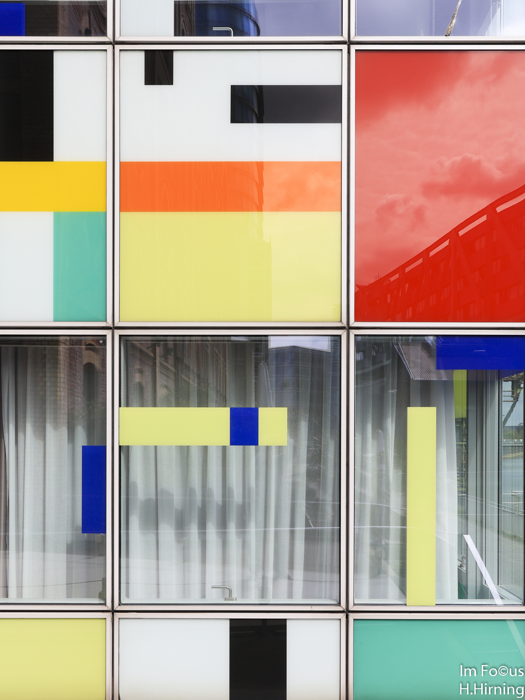 Eines der markantesten Gebäude ist das 62 Meter hohe Colorium von William Allen Alsop, dessen farbig gestaltete Fassade sofort ins Auge sticht.