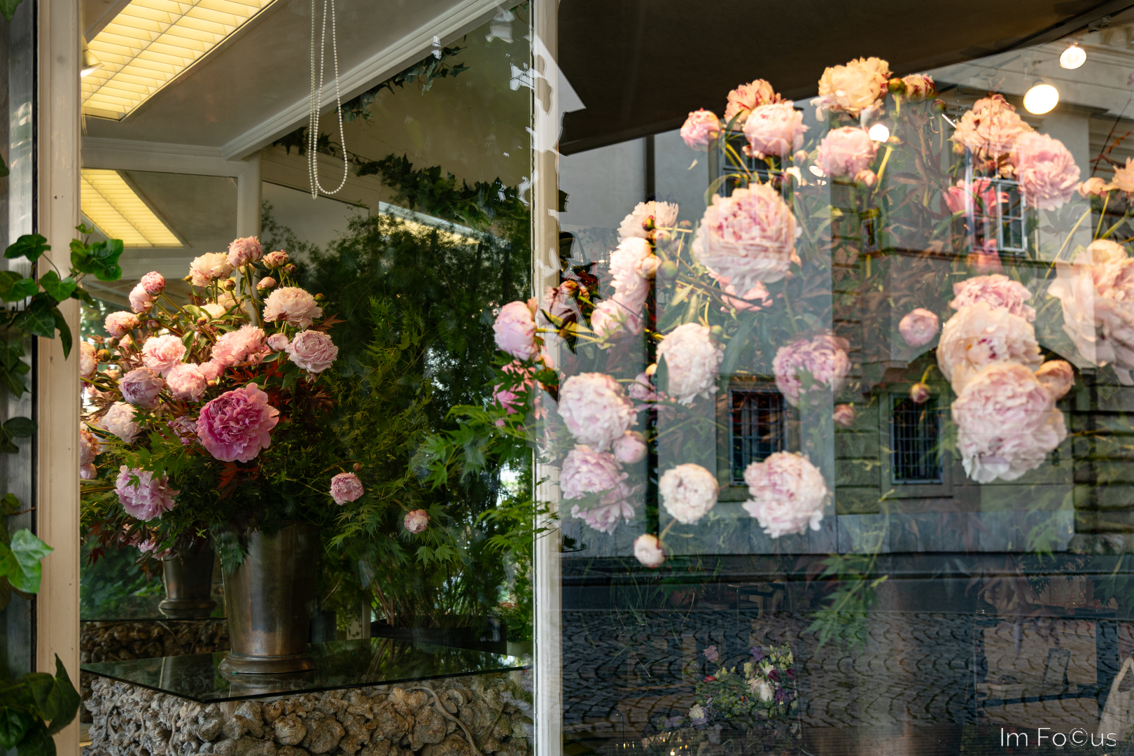 Betritt man die Altstadt durch das Tor an der Erzherzog-Johann-Allee befindet man sich zwischen Burg, Dom und Mausoleum im einstigen Machtzentrum. Die Grabstätte Kaiser Ferdinands II. zählt mit ihren zahlreichen Kuppeln zu den bedeutendsten Monumentalbauten in Österreich. Unmittelbar am Tor beeindruckt der Hofgärtner mit Blumenarrangements in überbordender Fülle. Die mehrfache Spiegelung der Pfingstrosen steigerte den Überfluss zu einem Verwirrspiel.