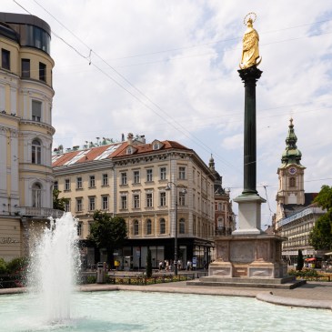 Mit dem Platz „Am Eisernen Tor“ endet die Herrengasse. Der Platz wird von der Mariensäule, einer Votivsäule, überragt. Mit deren Fertigstellung 1670 wurde ein Versprechen aus den Türkenkriegen eingelöst. Über den Opernring schließt sich der virtuelle Rundgang durch die Altstadt.