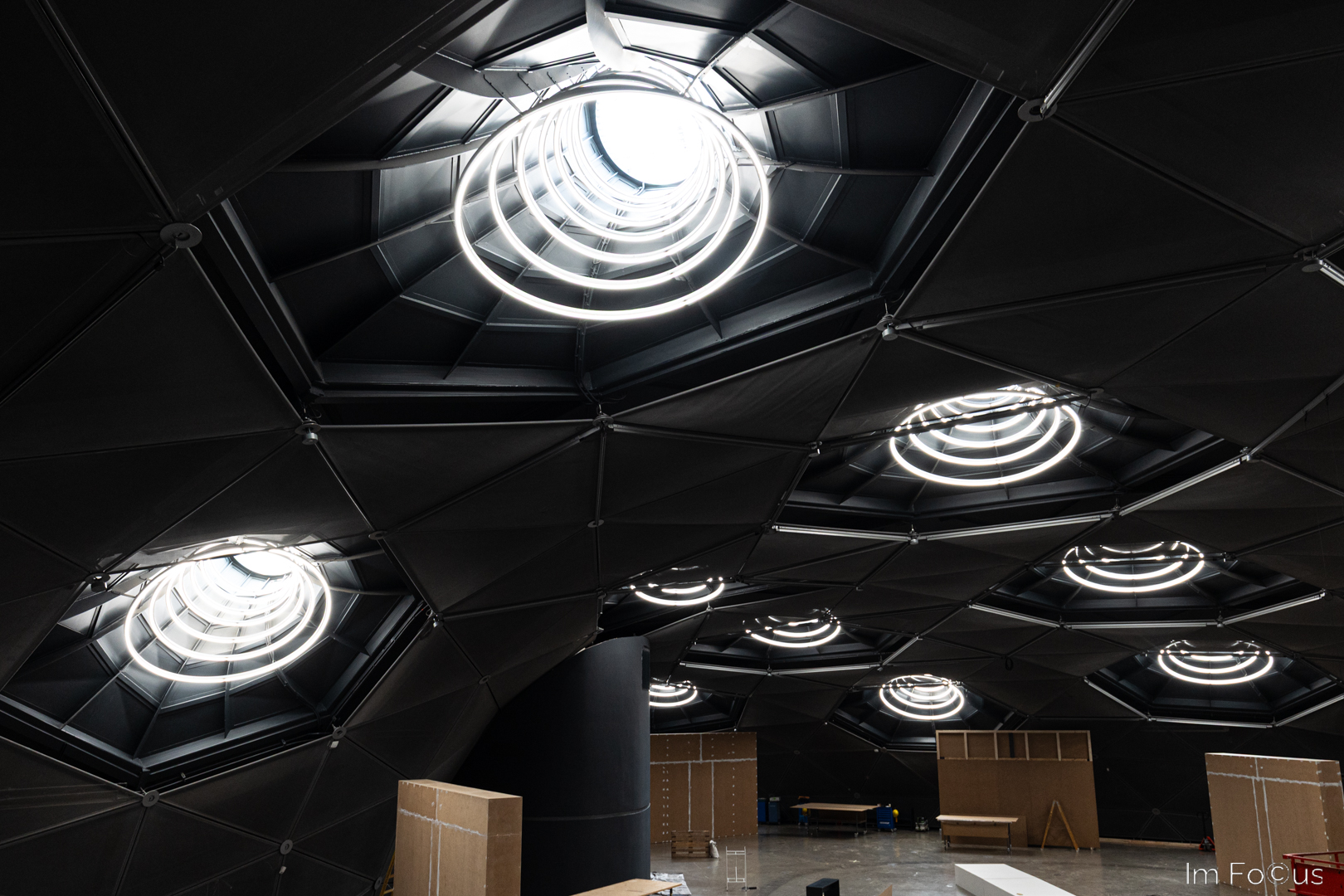 Die „Fühler“ dienen der Lichtführung und verleihen dem Raum unter der Gebäudehülle ein ganz besonderes Erscheinungsbild.