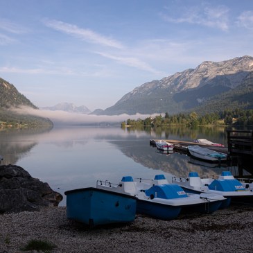 Wir hatten uns den Grundelsee als letzte Station unserer diesjährigen Frühsommerrunde ausgesucht, weil er abseits der Seenplatte des Salzkammerguts in einem östlichen Seitental liegt. Wir erhofften uns dort weniger Betrieb. Dies war nicht ganz zutreffend, da natürlich auch die touristischen Kapazitäten entsprechend begrenzt waren. Doch einen überdrehten Tourismus sucht man dort vergebens, es geht geruhsam zu.