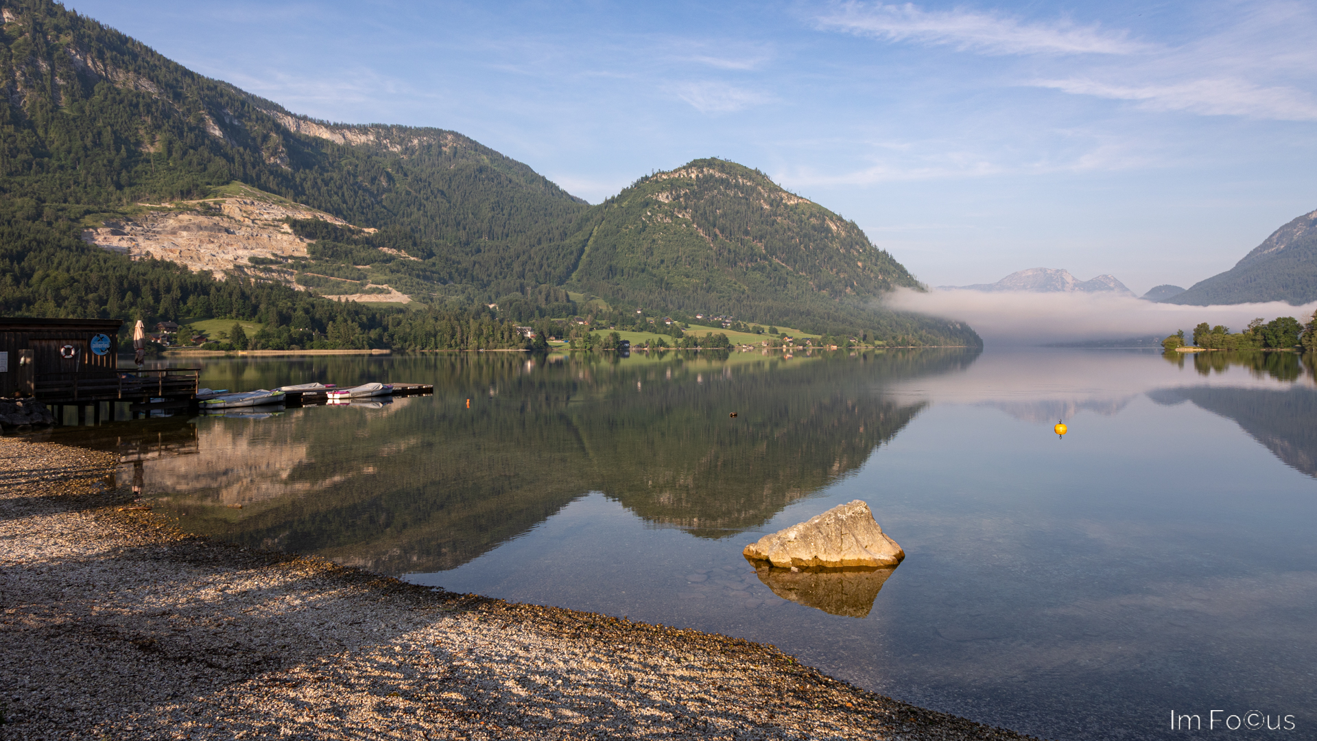 Wir hatten in Gößl am Ostende des Sees Quartier bezogen. Ein flacher Kiesstrand lädt dort zum Baden im glasklaren Wasser ein. Wegen der guten Sicht, ist der Grundelsee auch ein beliebtes Tauchrevier.