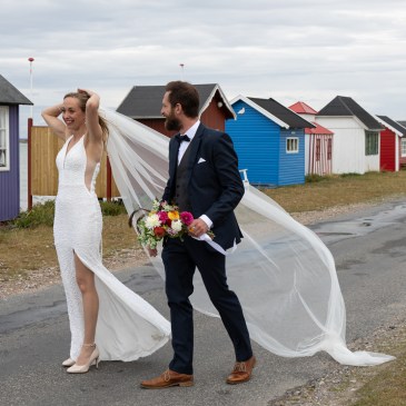 Die Insel AErö ist als Hochzeitsinsel und für ihre Badehäuschen bekannt. Klar, dass da die Badehäuschen die richtige Kulisse für die Hochzeitsfotos abgeben.