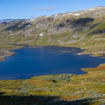 Vom Aurlandsfjord braucht es nur wenige Kilometer, bis man hoch oben im Sognefjell in arktischen Regionen angekommen ist. Die Fahrt dorthin beginnt gleich mit einer Superlativen der speziellen Art. Kurz hinter Aurland passiert man den mit 24,5 km längsten Straßentunnel der Welt. Bei dieser Gelegenheit sei angemerkt, dass die Norweger ohnehin die Tunnelbau-Weltmeister sind. Ob es darum geht in Städten die Verkehrsprobleme zu lösen, abgelegene Inseln ans Festland anzubinden oder das hinterletzte Tal verkehrsmäßig zu erschließen, die Norweger finden eine Tunnellösung. Es ist gewaltig, was die in den letzten Jahrzehnten geleistet haben. Von Övre Ardal aus windet sich der Tvindevegen hinauf ins Fjell und trifft dort auf die Hauptroute, die auf 1434 m Höhe das Sognefjell überwindet. Wer den Alpenraum kennt, ist versucht, solche Höhen als Bagatelle abzutun, doch hier im Norden bedeutet dies, man fährt zwischen den höchsten Bergen Nordeuropas durch arktische Tundra. Nachfolgend einige Eindrücke: