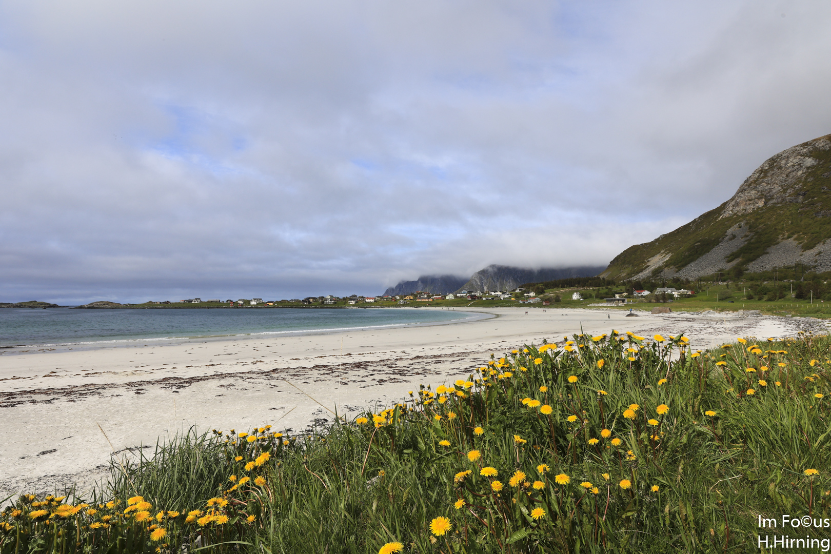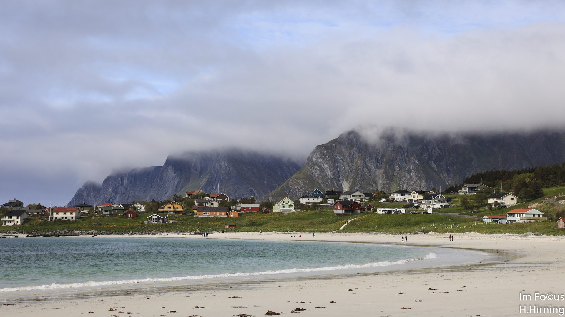 Und noch einen weiteren Ort möchte ich vorstellen: Wer kurz vor Ramberg dem Wegweiser Fredwang folgt, gelangt zum Sandbotnen. Vom Ende der Straße, bei der Häuseransammlung Ytresand, genießt man diesen herrlichen Blick über die fast schon magisch wirkende Bucht. Ein Ausblick, der sich nahezu bei jedem Wetter lohnt.