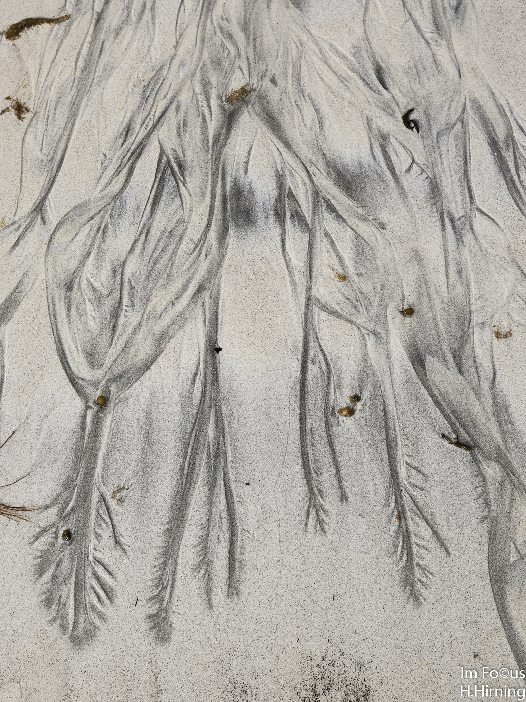 Beim Spaziergang am Strand gibt es immer etwas zu sehen. Mit der Kamera am Arm wird es da nie langweilig. Ob Braunalgen, Blasentang oder einfach nur Minipriele, die ihre fein verästelten Spuren der Erosion in den Sand zeichnen. Sich zu beschränken fällt dabei schwer.