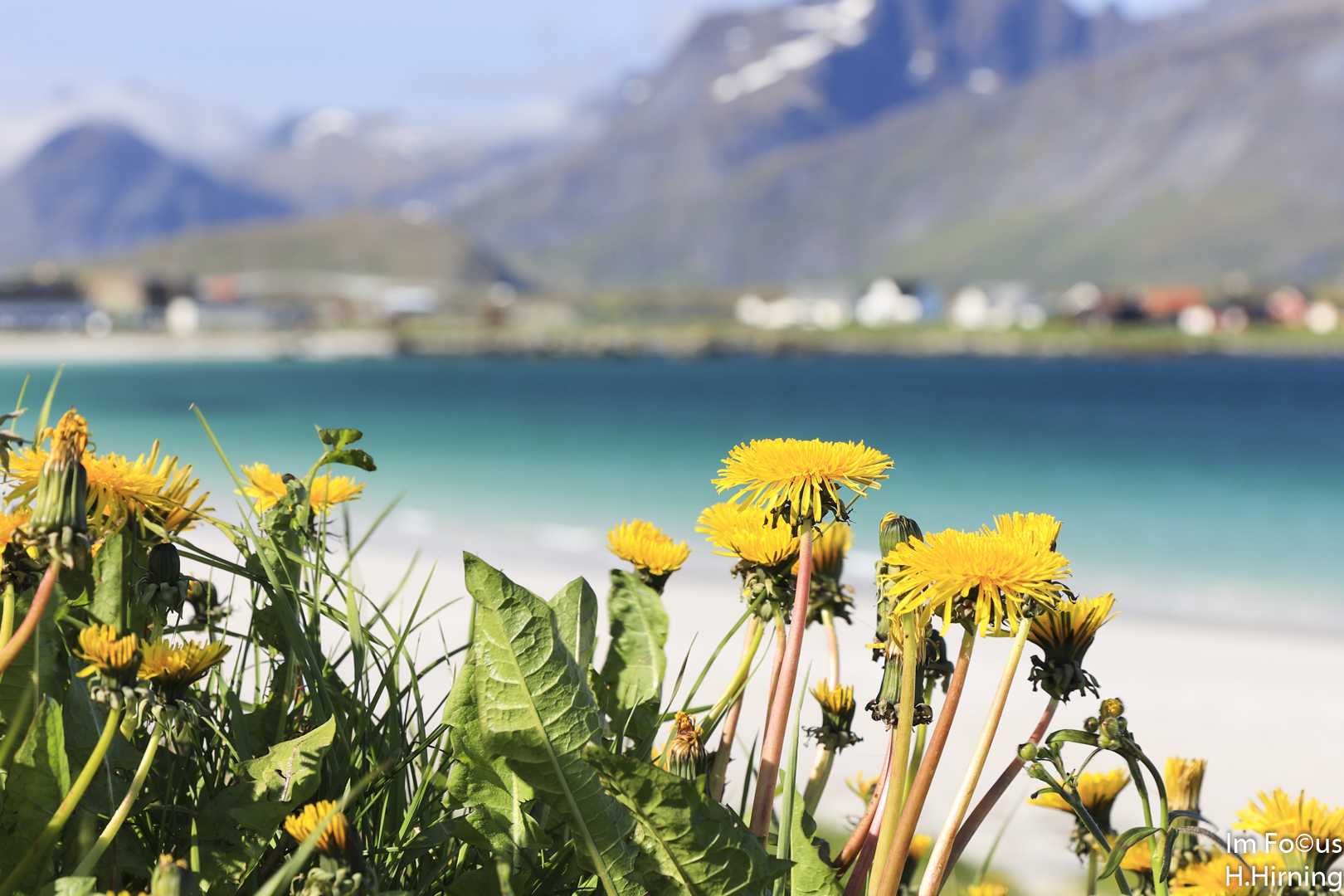 Nach unserer Ankunft in Ramberg setzte Wetterbesserung ein. Deshalb genossen wir den Sonnenschein am herrlich weißen Sandstrand noch einen Tag länger. Der Löwenzahn war übrigens bereits vor uns hier eingetroffen.
