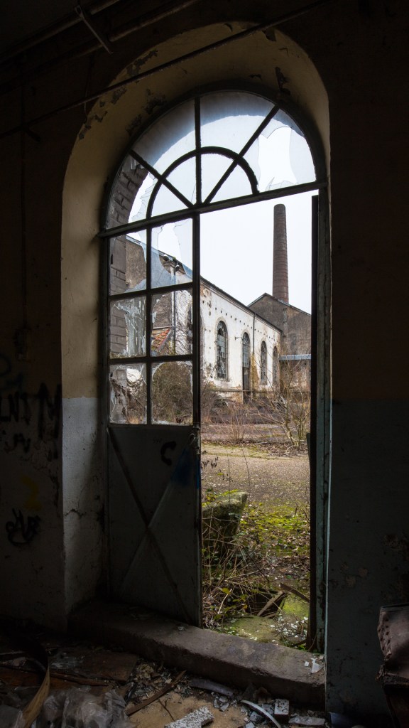 Als wir an einem trüben Januarmorgen Charmes in Richtung Nancy verließen, passierten wir am Ortsrand eine verfallene Industrieanlage. Die Ausdehnung des Areals war gewaltig. Einfach vorbeifahren war natürlich unmöglich, also wendete ich bei nächster Gelegenheit. Wir umrundeten das Gelände und fanden schließlich auch ein einigermaßen brauchbares Schlupfloch.